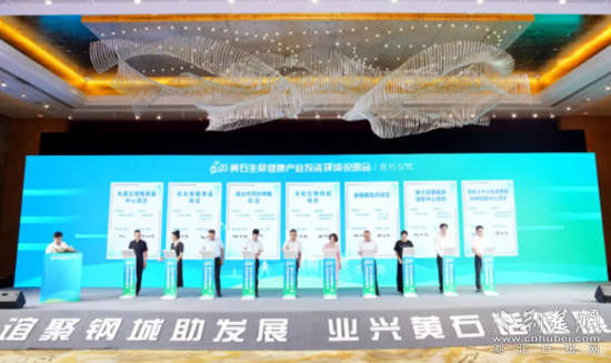 現(xiàn)場共簽約項目23個,總投資139.1億元,并為黃石生命健康產業(yè)協(xié)會授牌。