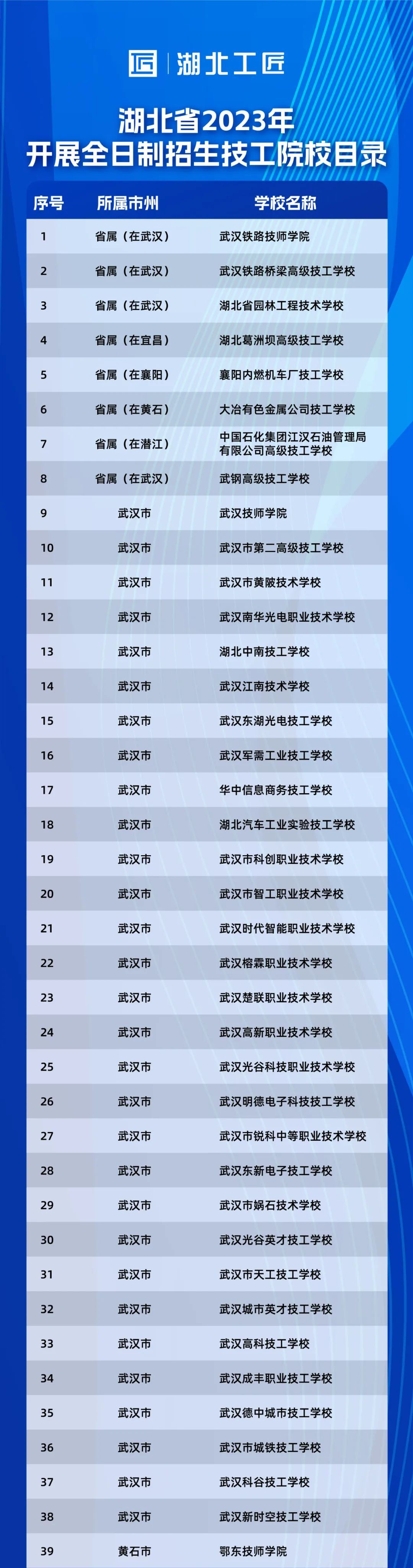 湖北省2023年開(kāi)展全日制招生技工院校目錄