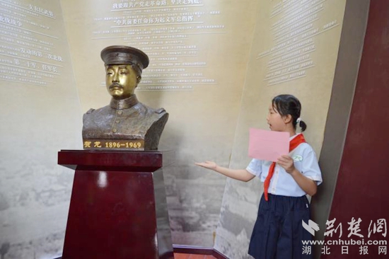 接著大家來到了賀龍軍部舊址研學點。賀龍軍部舊址紀念館是賀龍任軍長期間唯一一 座保存完整、有據(jù)可查的北伐戰(zhàn)爭時期的軍部舊址,是賀龍同志早期革命活動的重要實物見證,具有重要的歷史價值。在本站點共計10位“紅領(lǐng)巾”小小講解員為大家?guī)砹思t色歷史的回顧。