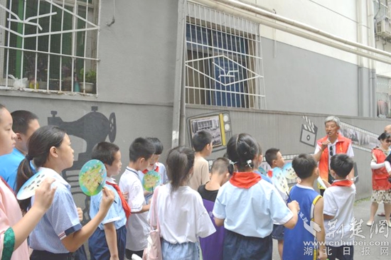 早上9時,大家來到老公安局小區(qū)歷史文化長廊研學點,小朋友們在社工的帶領(lǐng)下井然有序地聽取“紅領(lǐng)巾”小小講解員張景婷講述著“老公安局小區(qū)是古樓街歷史上繁華的一個商業(yè)中心,曾經(jīng)在明朝和清朝兩代570多年,這里是武昌縣衙門的所在地......”的歷史,大家仿佛看見了那個熱火朝天的時代。