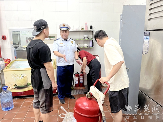 期間,檢查人員重點(diǎn)檢查了場所內(nèi)消火栓和滅火器是否完好有效、燃?xì)鈭?bào)警裝置運(yùn)行是否正常、廚房燃?xì)廛浌苁欠穹弦?、燃?xì)夤芫€和閥門等設(shè)備是否存在老化、油煙管道及灶具是否定期清理、有無亂搭亂接大功率插頭和電線、場所從業(yè)人員是否掌握消防安全常識(shí)和撲救初起火災(zāi)的能力等情況。