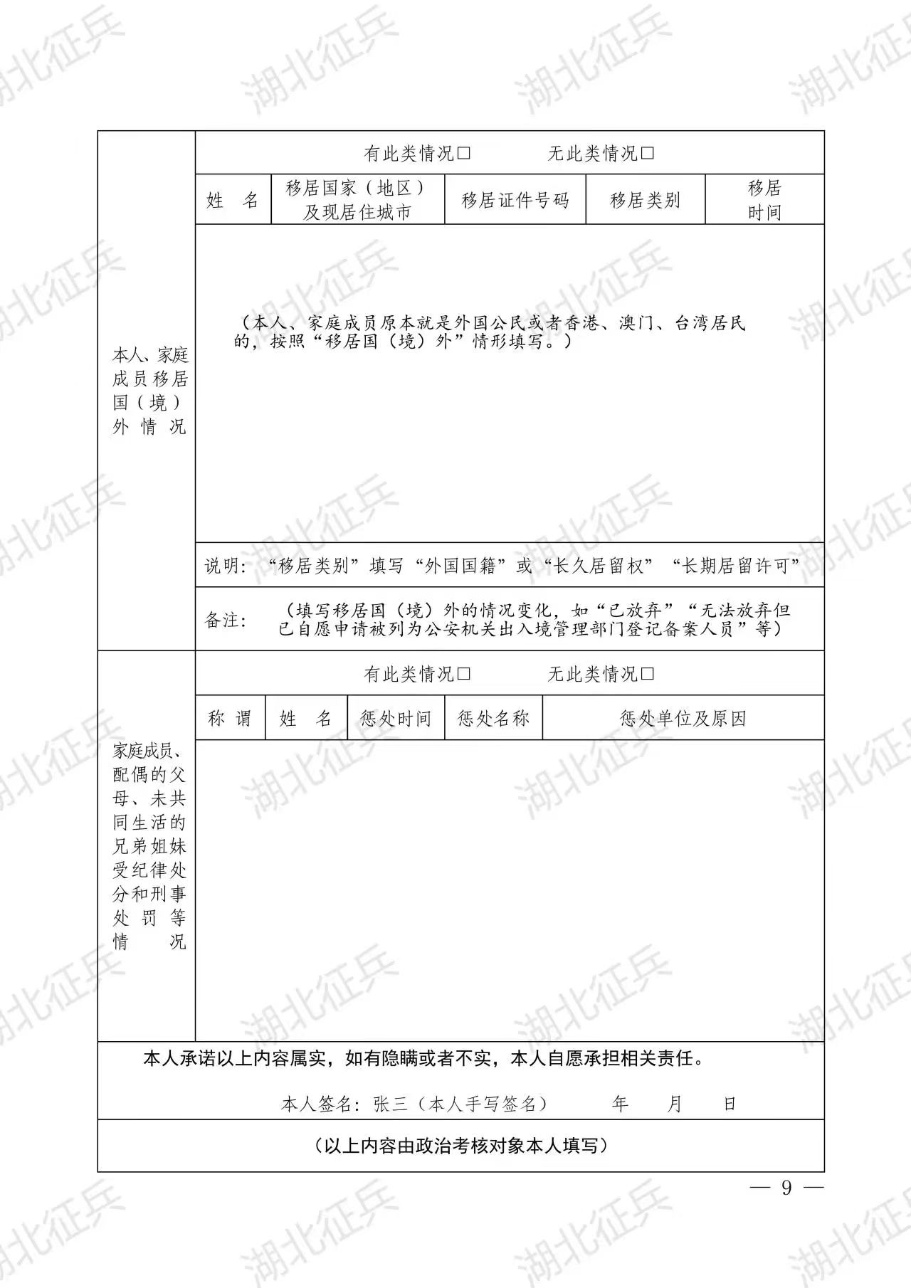 10.家庭成員、配偶的父母、未共同生活的兄弟姐妹有危害國家安全行為受到刑事處罰或者正在被偵查、起訴、審判的,組織、參加、支持民族分裂、暴力恐怖、宗教極端等非法組織的,是邪教、有害氣功、黑社會性質(zhì)組織或者會道門成員的;