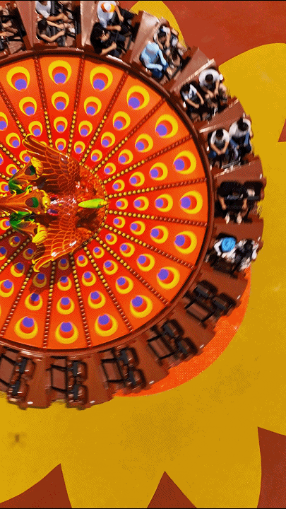 《鳳舞九天》飛天轉(zhuǎn)盤游樂項(xiàng)目,不僅外觀精美,而且體驗(yàn)感極強(qiáng)!座艙在360°公轉(zhuǎn)的同時又有規(guī)律的偏心旋轉(zhuǎn),讓你擁有如鳳凰飛翔般的非凡體驗(yàn)。