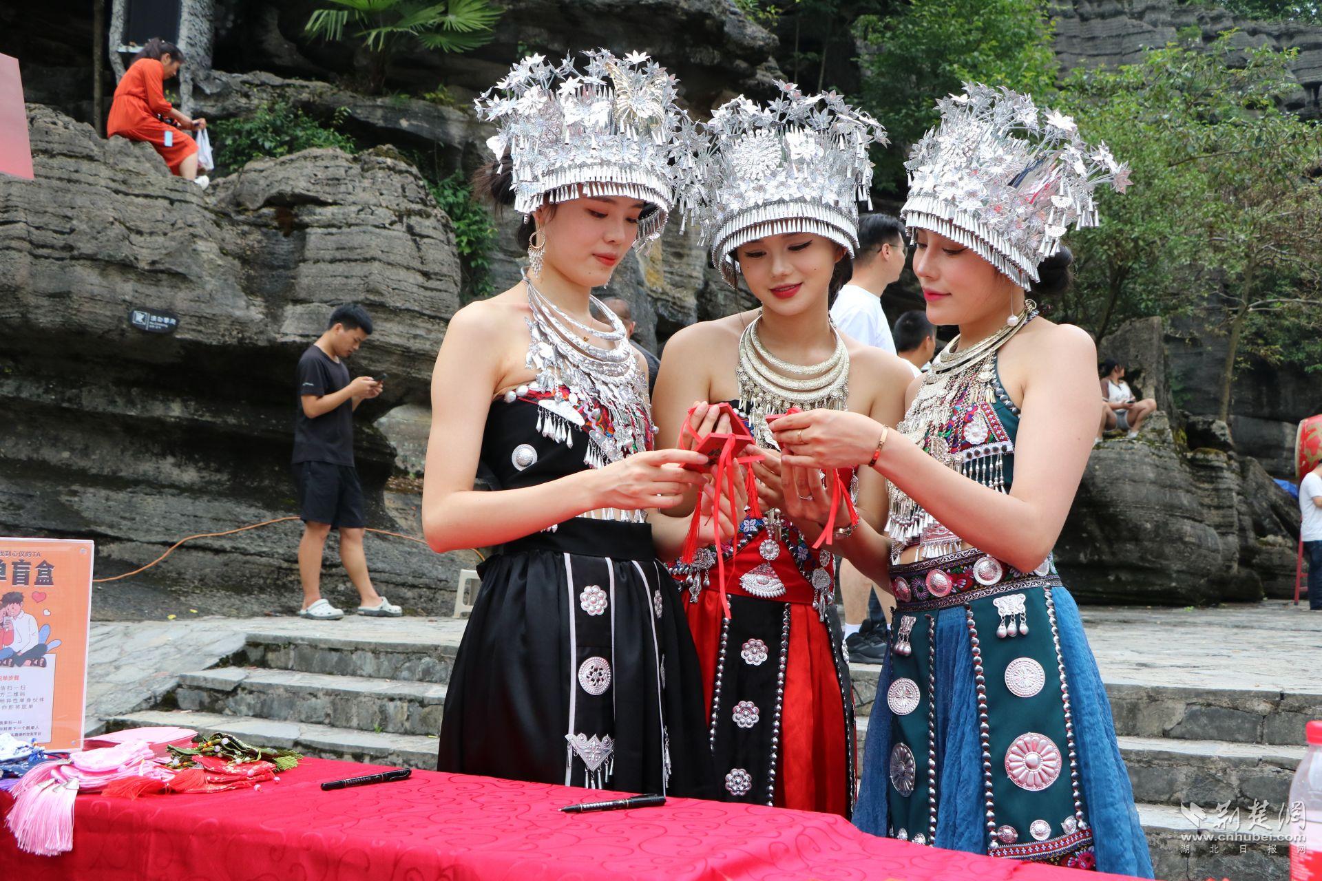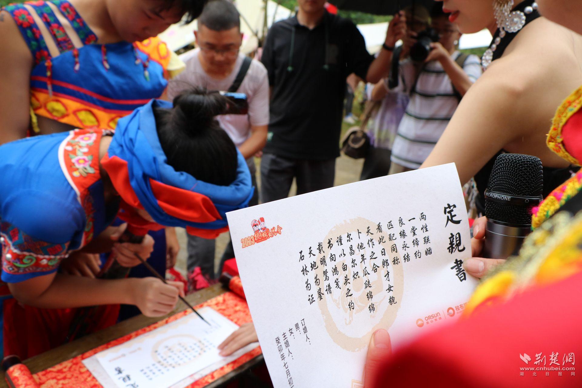 現(xiàn)場(chǎng)單身男女通過石林自由相親、集體相親等互動(dòng)環(huán)節(jié),成功牽手12對(duì)并在儺婆石前簽下了定情書。女兒會(huì)自由相親及情歌互動(dòng)活動(dòng)將持續(xù)至8月23日,以文化牽引力量,助力恩施大旅游發(fā)展。