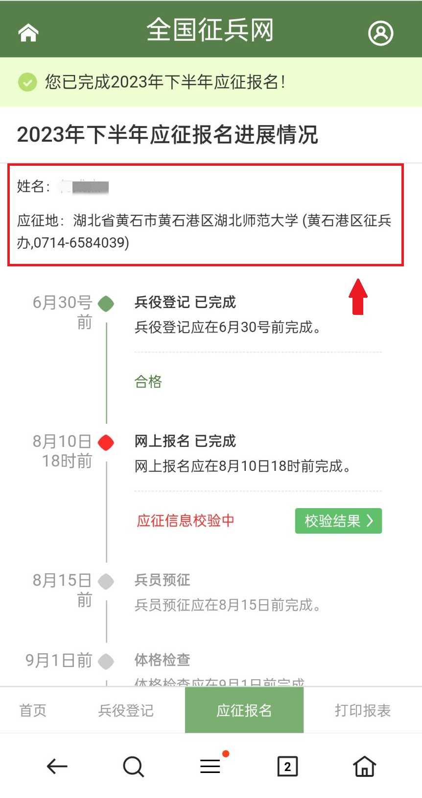 全國(guó)征兵網(wǎng)是應(yīng)征報(bào)名唯一官方網(wǎng)站,應(yīng)征青年完成報(bào)名之后,系統(tǒng)會(huì)自動(dòng)顯示應(yīng)征地和所屬征兵辦的咨詢電話,有任何疑問都可以撥打咨詢。應(yīng)征地征兵辦也會(huì)主動(dòng)聯(lián)系溝通相關(guān)事宜,不要輕信來(lái)路不明的工作人員,提高警惕!