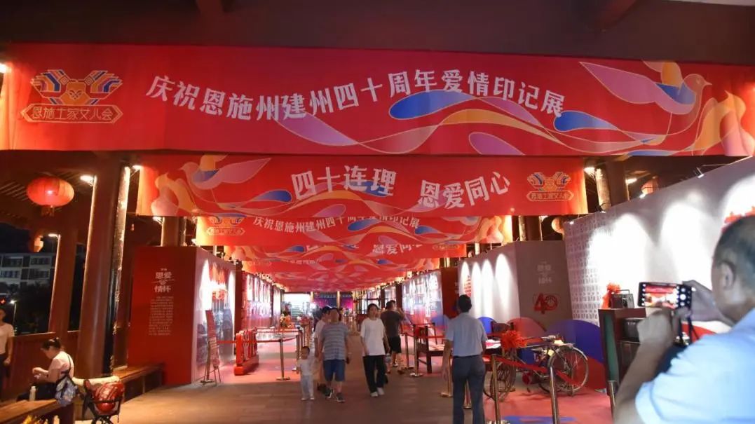 炫麗的風雨橋上,《四十連理恩愛同心》愛情印記展每天吸引觀展人次達3萬,一件件承載著愛情的老物件訴說著恩施州建州40周年的歷史,莊重而又浪漫。