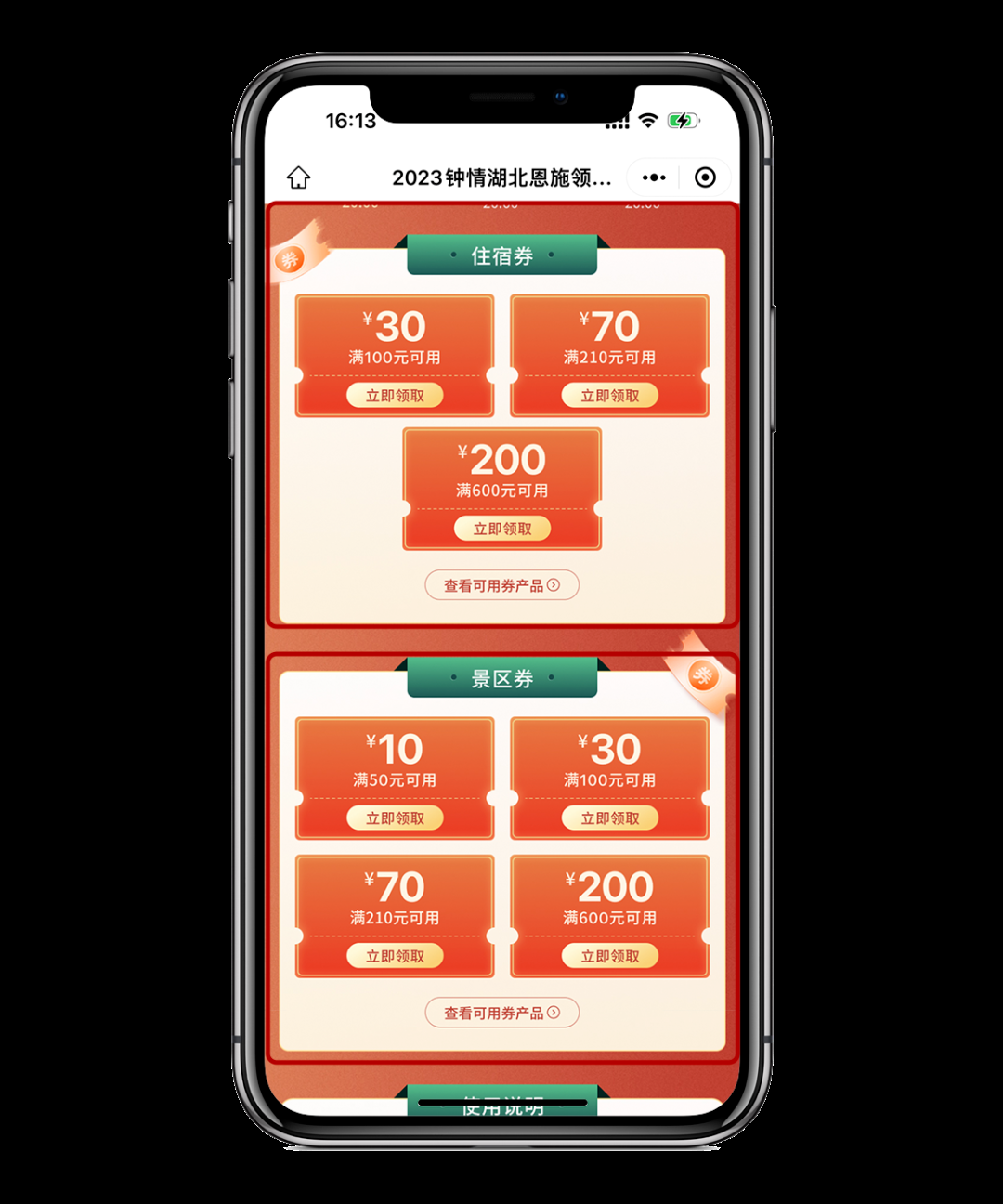 方法二:進入攜程旅行App任一“極目楚天 鐘情恩施”恩施文旅消費券主題廣告位,即可進入活動頁面領(lǐng)取消費券。