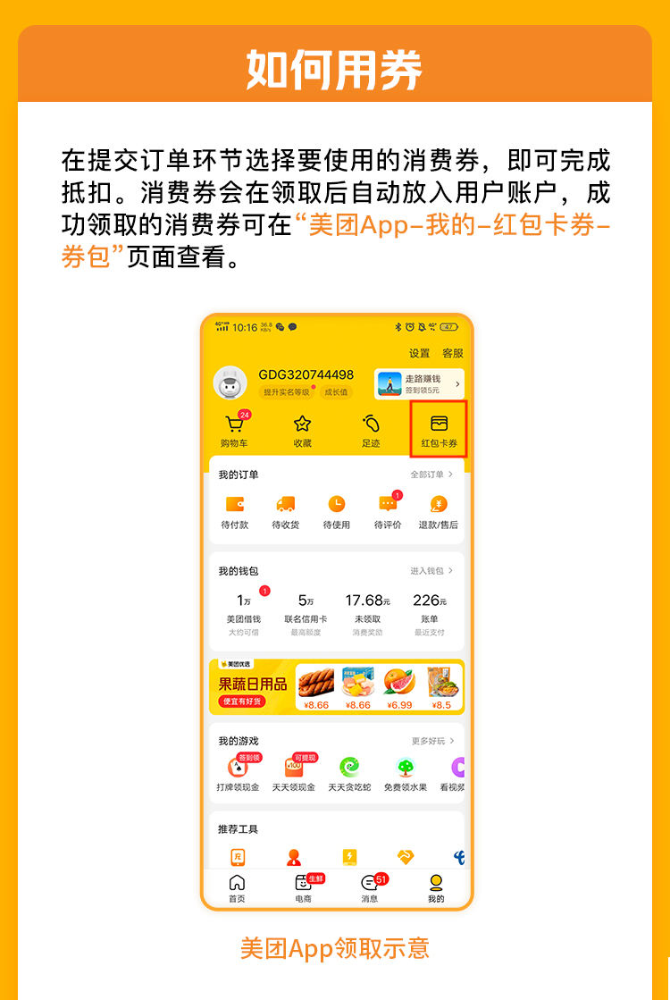 3.用券要求。消費者在下單購買或支付消費券使用范圍內(nèi)的產(chǎn)品和服務時,應在享受平臺和商戶已有優(yōu)惠折扣后,于最后支付環(huán)節(jié)使用消費券。
