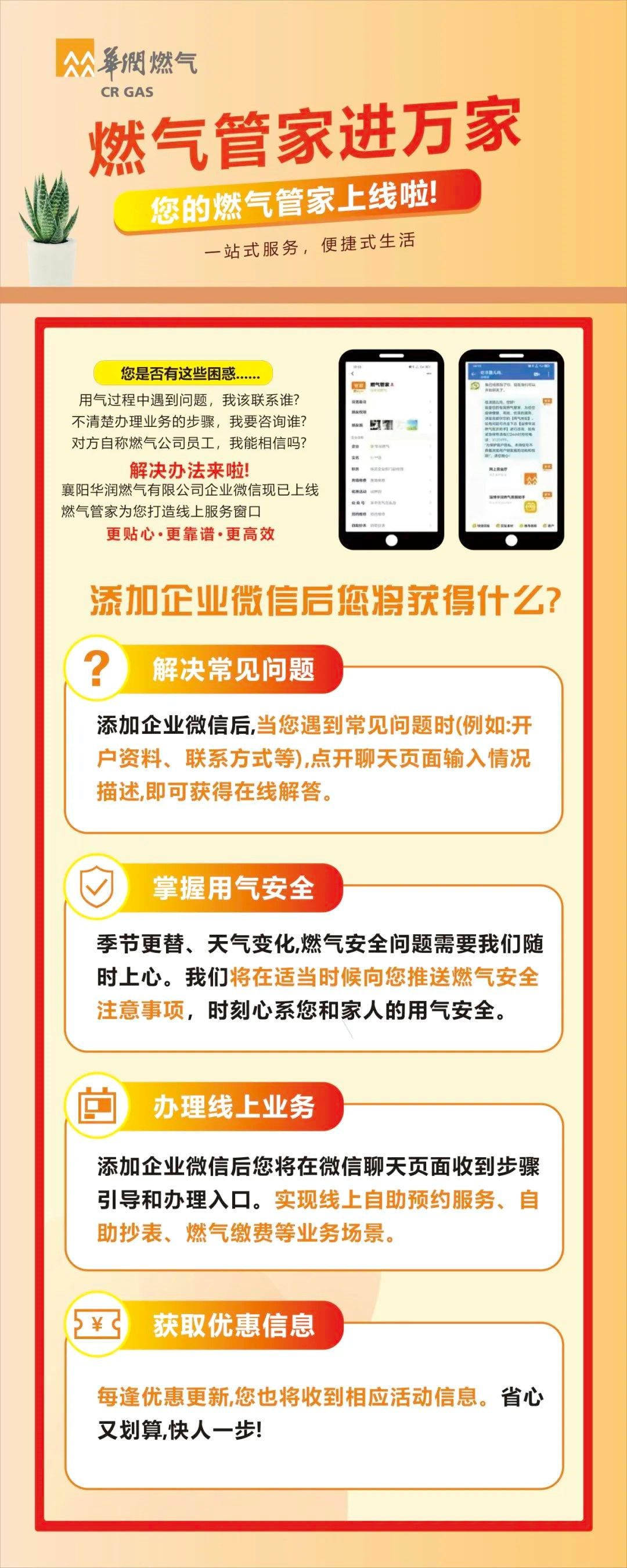 添加企業(yè)微信后,可以獲得解決常見問題、掌握用氣安全、辦理用戶業(yè)務、獲取優(yōu)惠信息等具體問題的解決方法。