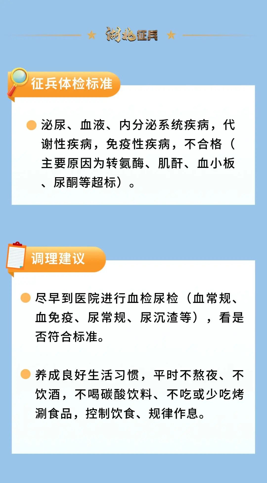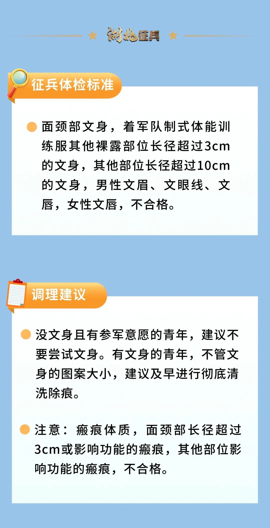準(zhǔn)備參軍的適齡青年們,可以對(duì)照查看自己是否符合體檢標(biāo)準(zhǔn)并針對(duì)性地進(jìn)行調(diào)整,積極排查消除可能存在的身體隱患,為“軍旅夢(mèng)”做好充足準(zhǔn)備。