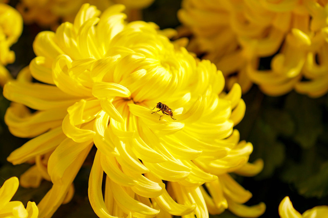 菊香引得蜂自來(lái),滿園菊花齊爭(zhēng)艷!