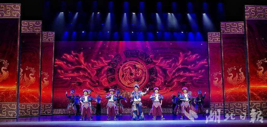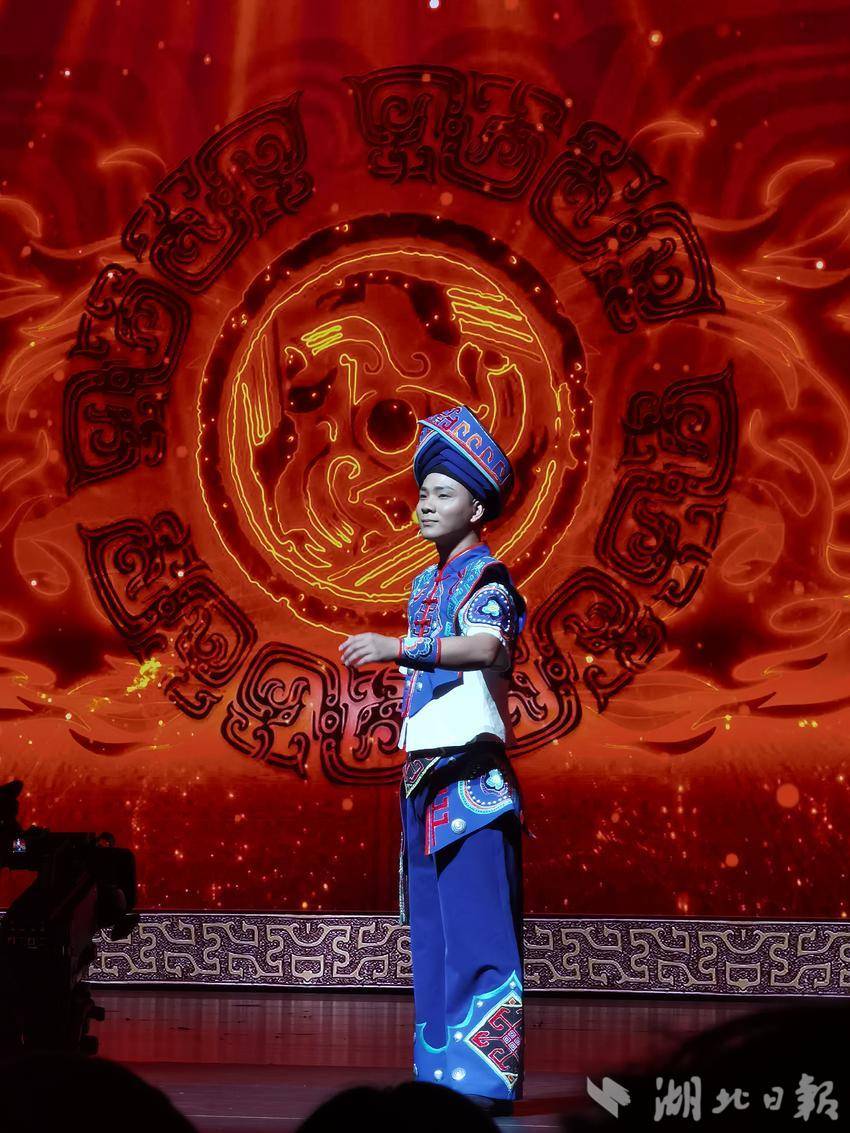在鄂西的群山碧水間,絢麗多彩的巴楚文化融合相生,飽含土苗風(fēng)情的原生態(tài)民歌代代相傳。當(dāng)晚,“土家漢子”組合和獲得湖北省中青年藝術(shù)表演人才大賽的各京劇院團(tuán)的獲獎選手們共同帶來的歌舞《巴虎楚風(fēng)》精彩亮相。當(dāng)京劇攜手原生態(tài)民歌融合創(chuàng)新、當(dāng)鄂西民歌遇上荊楚國粹,剛?cè)岵?jì),碰撞出了驚艷的藝術(shù)火花,贏得在場觀眾陣陣掌聲。