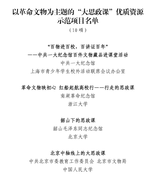 以革命文物為主題的“大思政課”優(yōu)質(zhì)資源示范項(xiàng)目名單正式發(fā)布