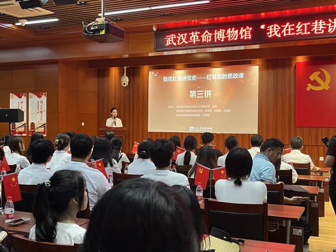 “紅巷里的思政課”是武漢革命博物館充分發(fā)揮全國(guó)“大思政課”實(shí)踐教學(xué)基地作用,依托紅色文化資源,聯(lián)合武漢大學(xué)、華中科技大學(xué)、華中師范大學(xué)、湖北大學(xué)等九所高校的馬克思主義學(xué)院共同打造的創(chuàng)新型教育實(shí)踐項(xiàng)目。項(xiàng)目把“思政課”搬進(jìn)博物館,以紅巷思政理論課、紅巷青馬微宣講、紅巷苗苗故事匯、“武漢1927”沉浸式思政課為核心教學(xué)內(nèi)容,每月一講,為廣大觀眾提供了學(xué)黨史促交流的平臺(tái),使“思政小課堂”和“社會(huì)大課堂”緊密銜接,大中小學(xué)師生和社會(huì)觀眾同頻共振,營(yíng)造了濃厚的學(xué)思踐悟?qū)嵺`教育氛圍。自開(kāi)課以來(lái),場(chǎng)場(chǎng)爆滿(mǎn),觀眾好評(píng)如潮。