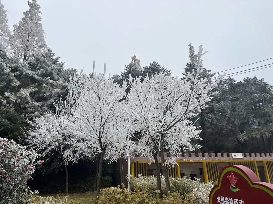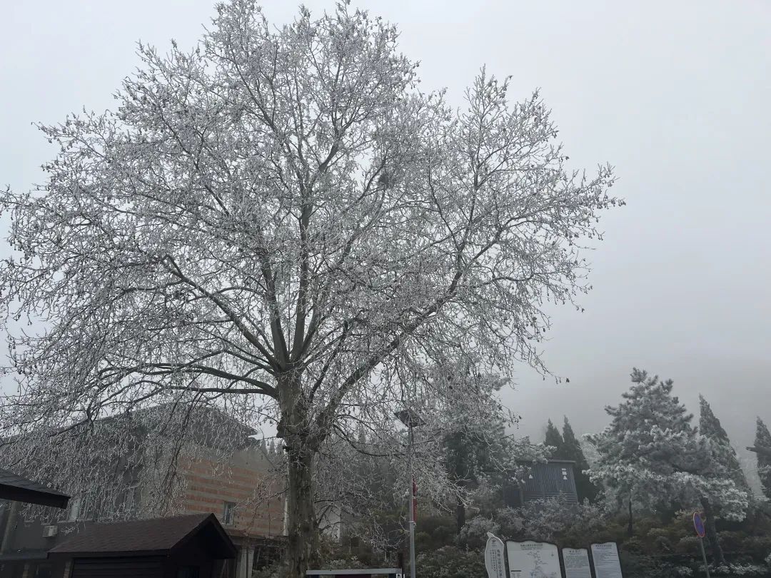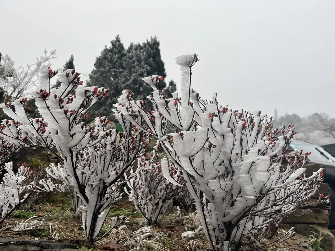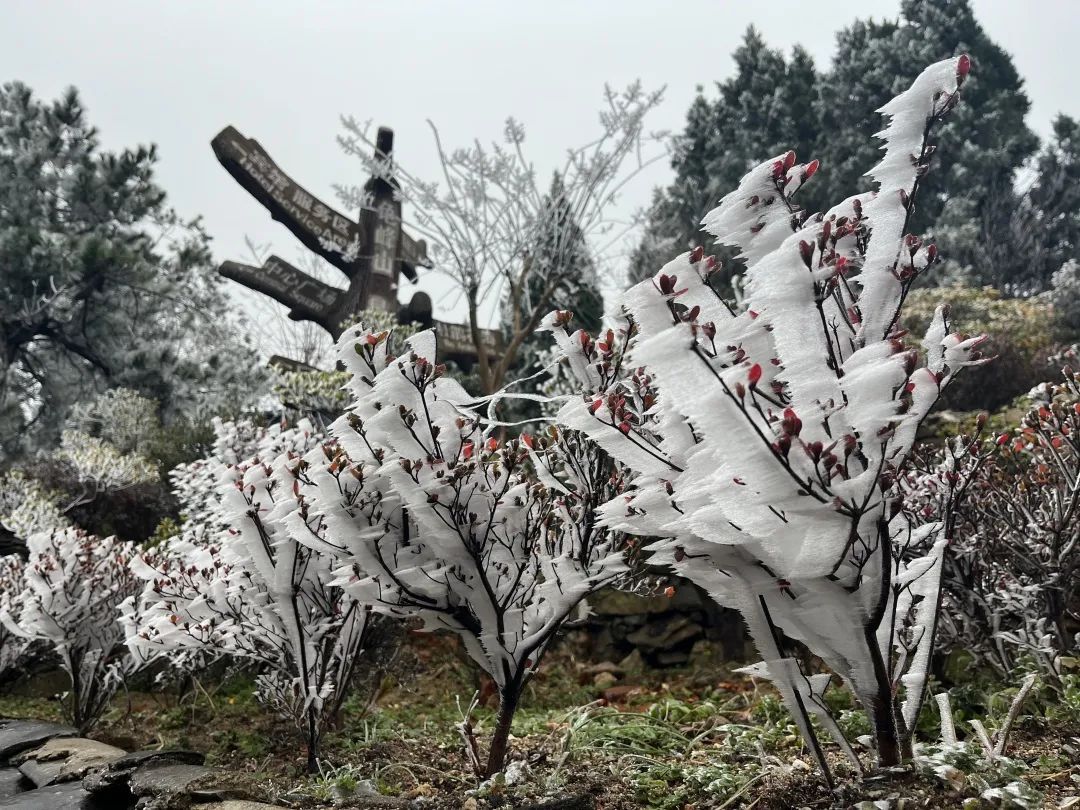 荊楚網(wǎng)(湖北日報網(wǎng))訊(通訊員尹杰)濃霜中夜零,千林成霧凇。隨著氣溫的下降,龜峰山景區(qū)現(xiàn)霧凇奇觀。冰雕玉砌、晶瑩閃爍,霧凇綴滿枝頭,云霧籠罩下開啟仙境模式。