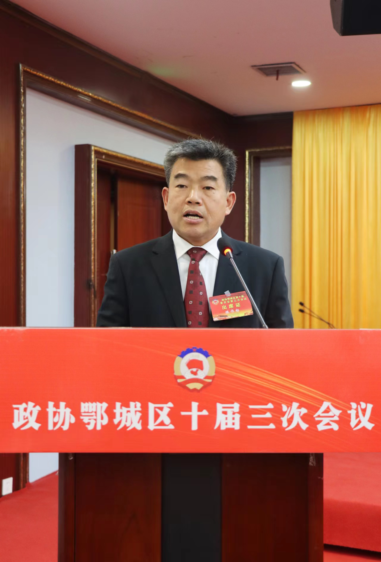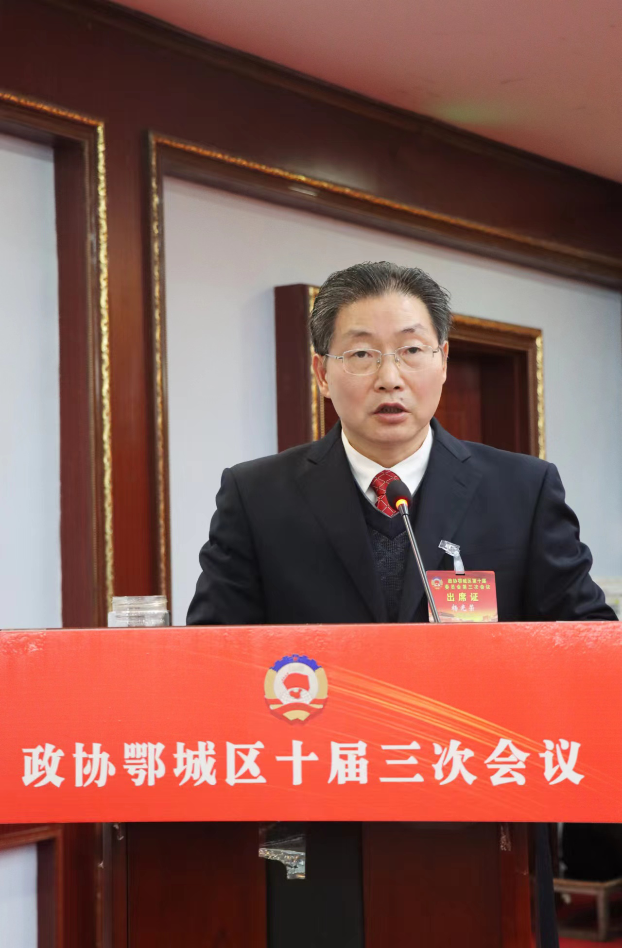 鄂城區(qū)政協(xié)主席楊光榮代表政協(xié)鄂城區(qū)第十屆委員會常務(wù)委員會作工作報(bào)告。胡小軍 攝