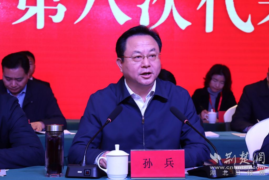鄂州市人大常委會黨組成員、副主任、市總工會主席候選人葉祥明作大會工作報告。阮瓊 攝