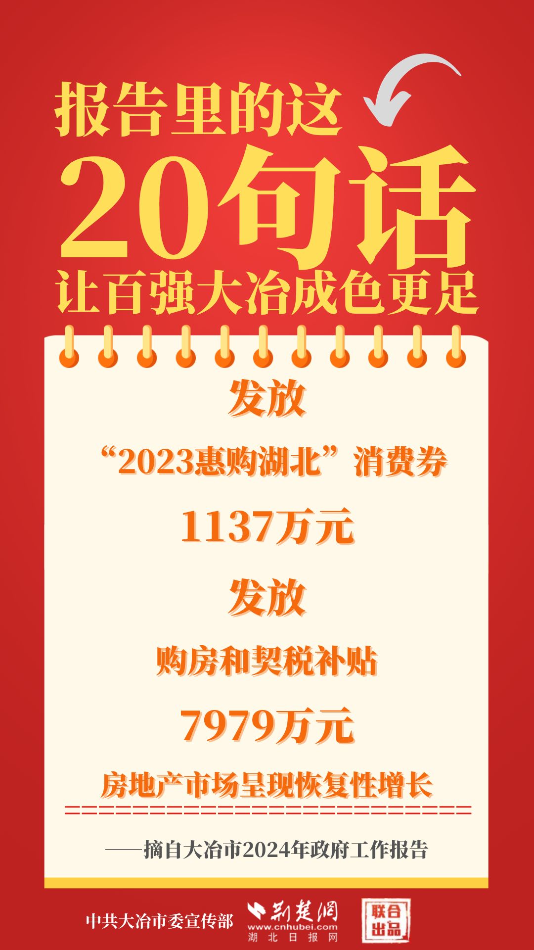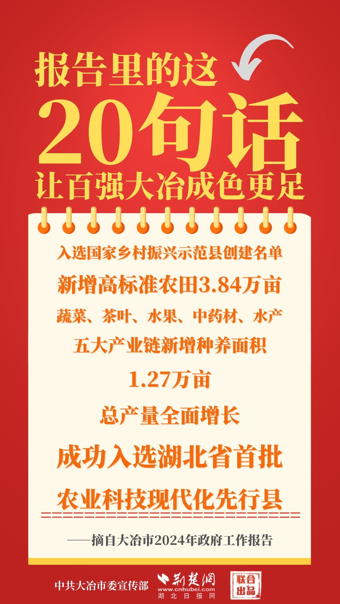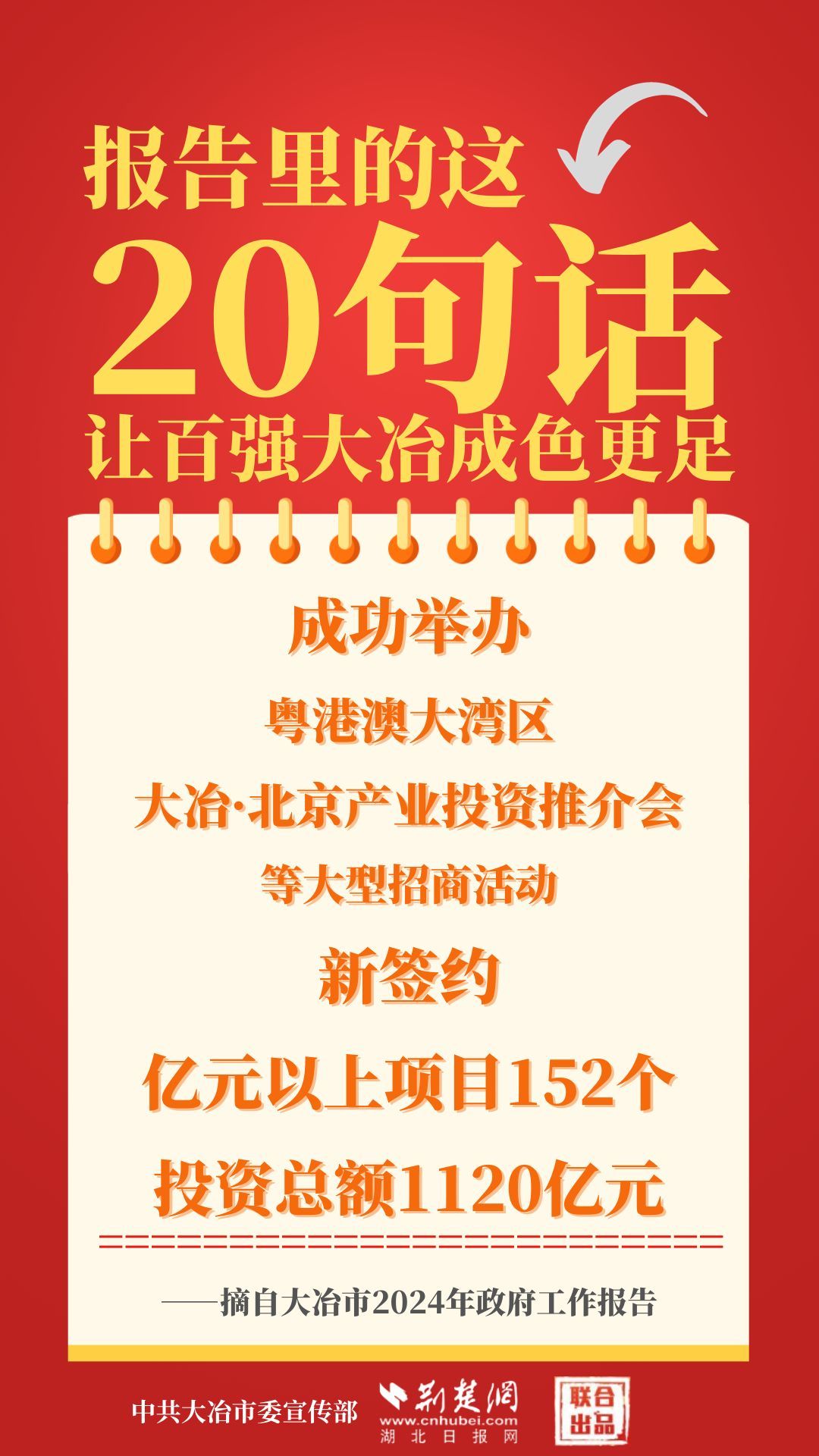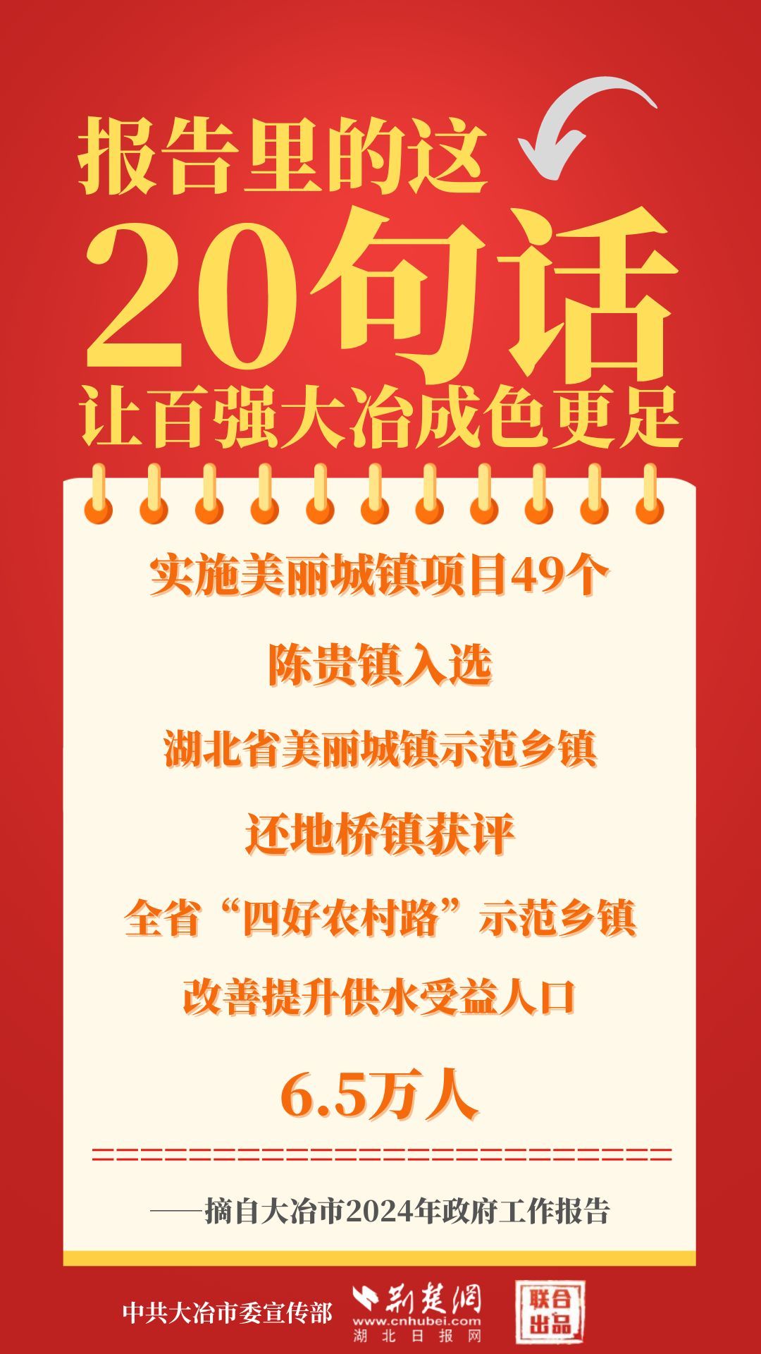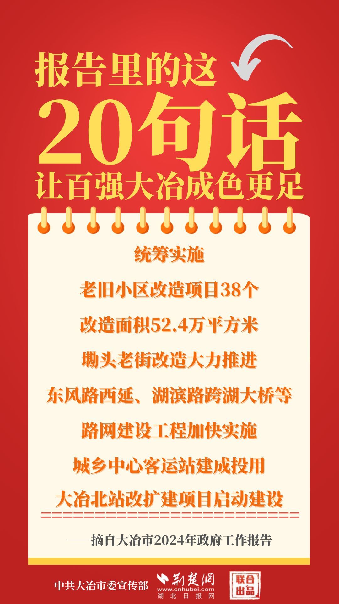 1月12日,大冶市第七屆人民代表大會(huì)第四次會(huì)議開(kāi)幕,大冶市委副書(shū)記、市長(zhǎng)孫輒作政府工作報(bào)告。報(bào)告里的這20句話(huà),讓百?gòu)?qiáng)大冶成色更足。