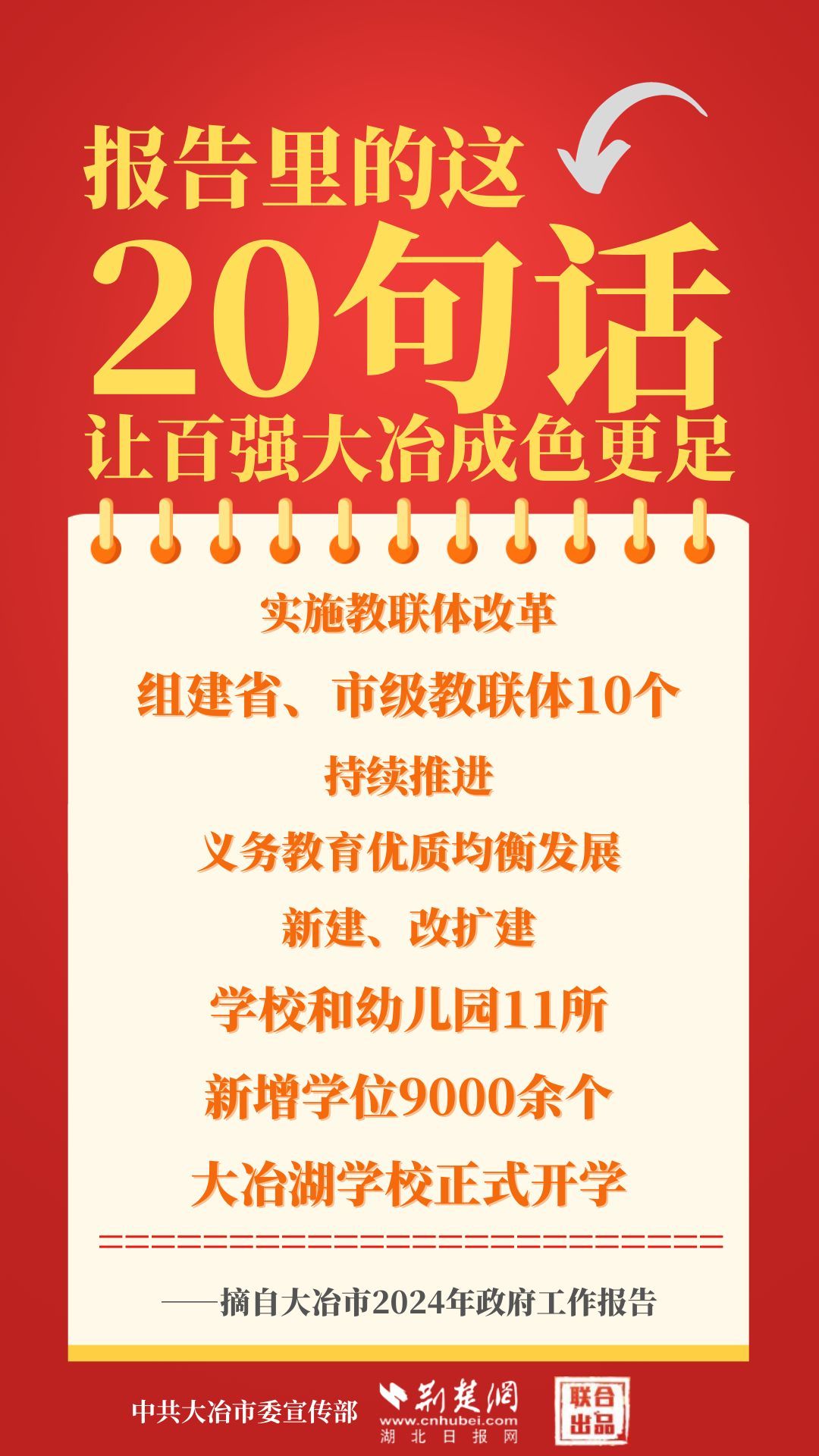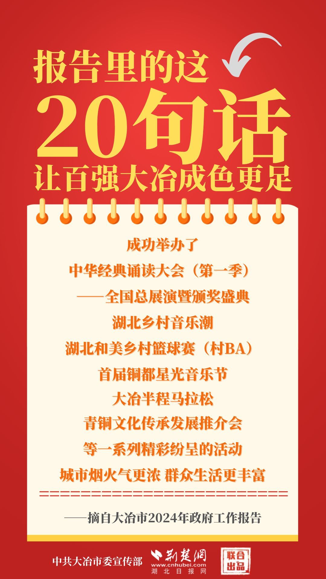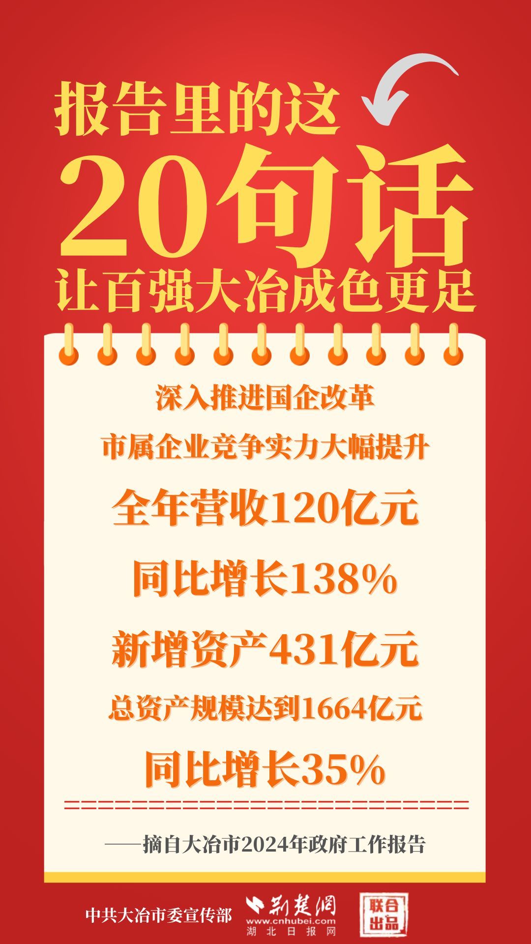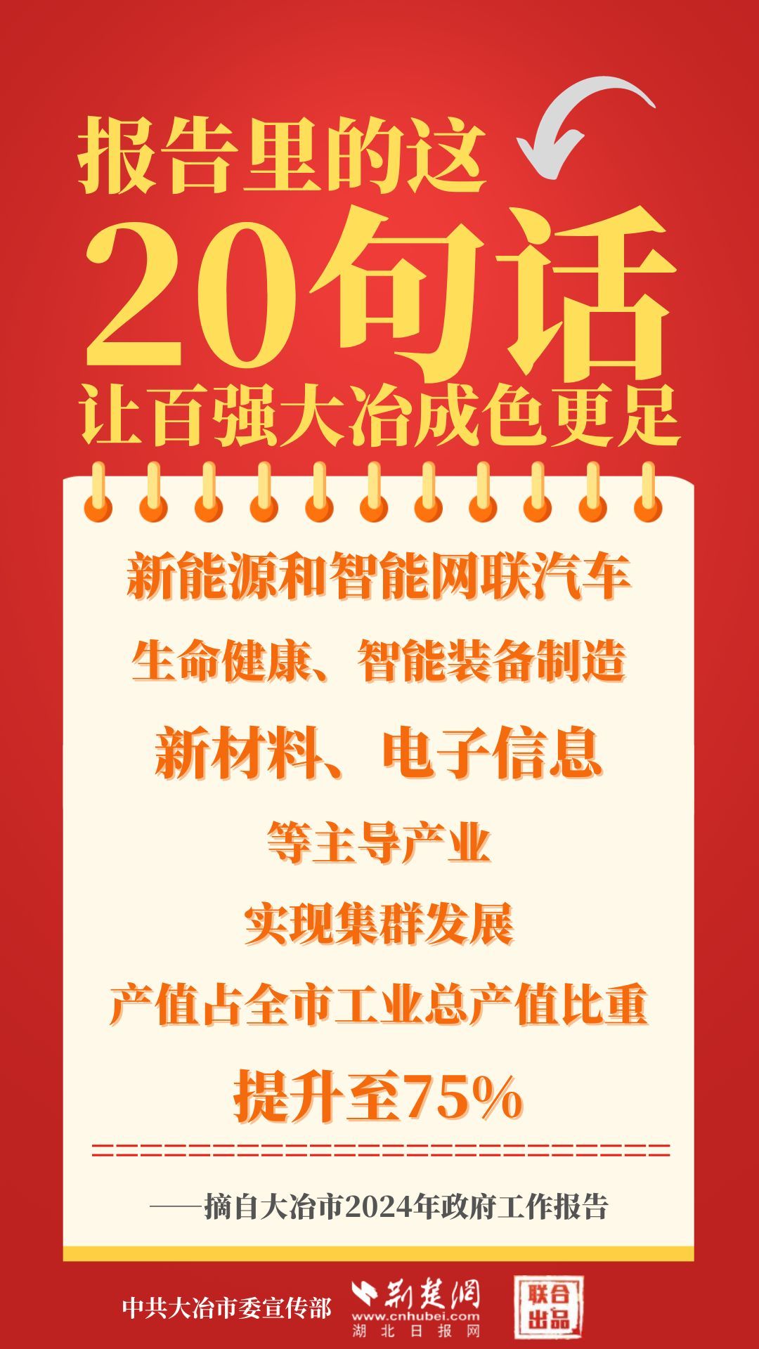 1月12日,大冶市第七屆人民代表大會(huì)第四次會(huì)議開(kāi)幕,大冶市委副書(shū)記、市長(zhǎng)孫輒作政府工作報(bào)告。報(bào)告里的這20句話(huà),讓百?gòu)?qiáng)大冶成色更足。