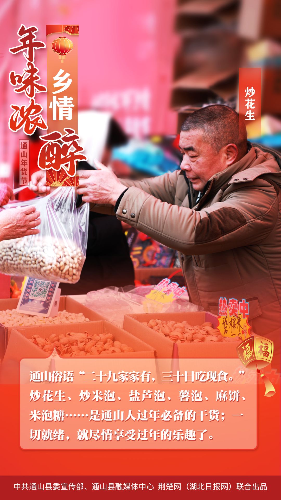 1月25日,2024通山縣首屆“年貨節(jié)”主會場,匯集傳統(tǒng)手工美食、酒類、飲品、食品、民俗文化、工藝品、金融通信服務、特色小吃8個主題消費展區(qū)190個展位,匯聚了該縣本地美味山珍,吸引了該縣群眾紛紛前來“打年貨”。