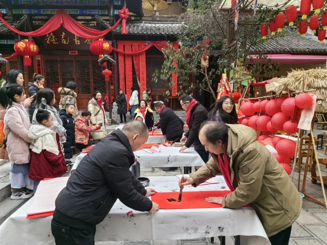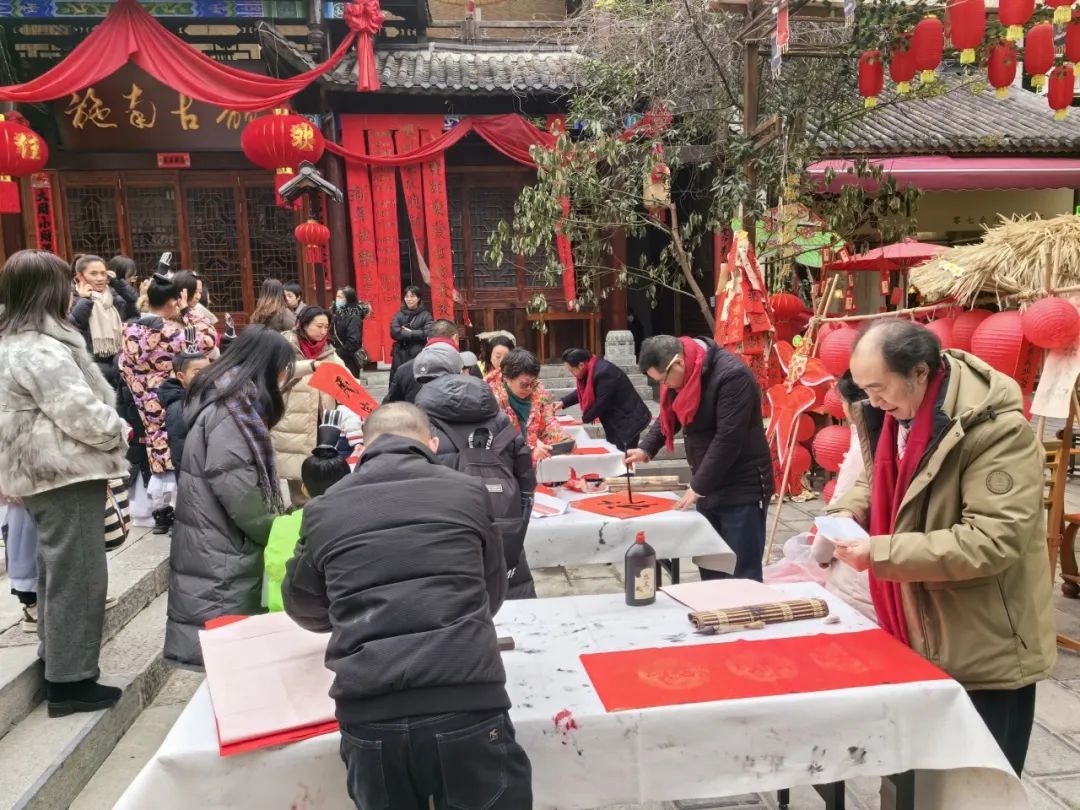 “辰龍送瑞,春聯(lián)送福”。在女兒城非遺劇場(chǎng)門口,免費(fèi)送春聯(lián)活動(dòng)準(zhǔn)時(shí)開(kāi)始。翰墨飄香迎新春,筆墨濃情送祝福,書(shū)法老師們揮毫潑墨、凝神動(dòng)筆,市民朋友圍成環(huán)裝認(rèn)真觀賞,一時(shí)間紅紙翻飛墨香四溢,一副副充滿吉祥如意祝福的手寫(xiě)春聯(lián)呈現(xiàn)在人們眼前。