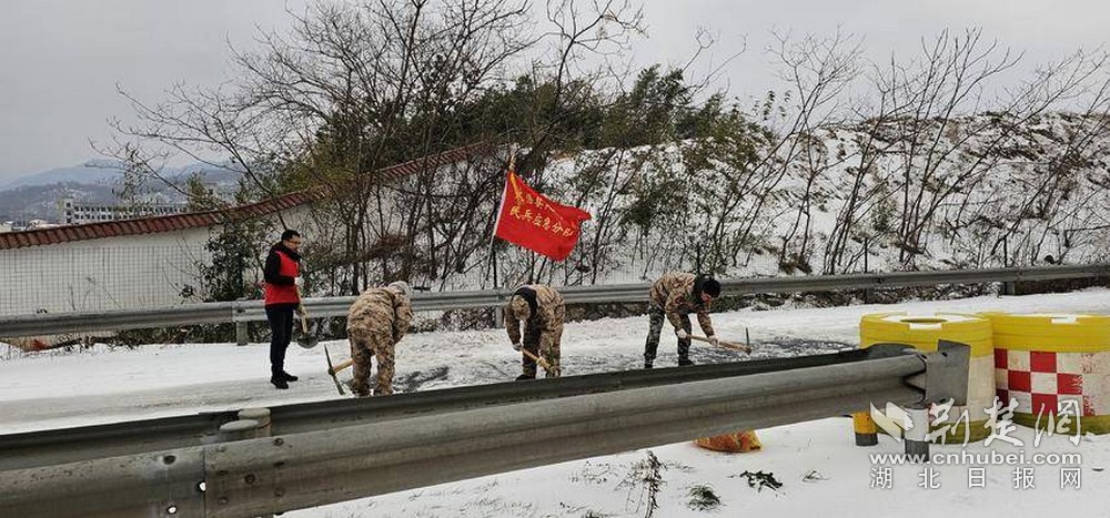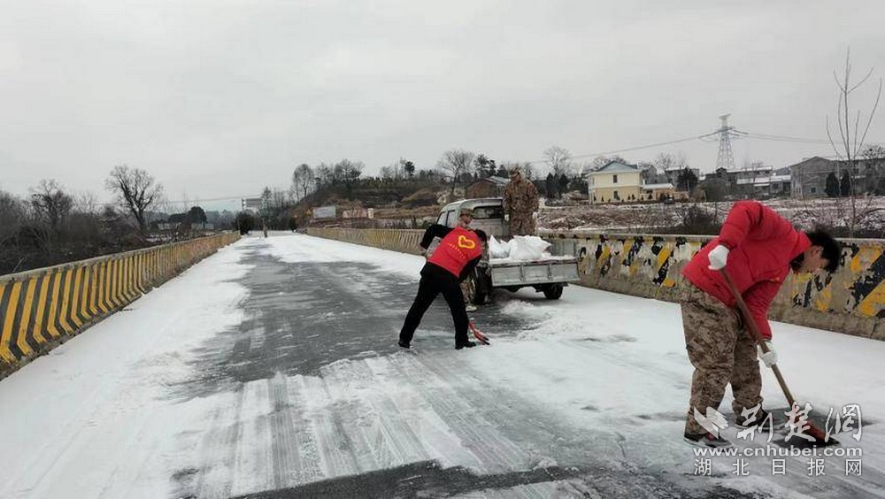 陽平鎮(zhèn)民兵志愿者到京珠高速鏟冰除雪,禮山學(xué)校志愿者來到京港澳高速出口除冰雪保暢通。縣直單位和鄉(xiāng)鎮(zhèn)區(qū)組織多名志愿者上路、進(jìn)社區(qū)開展掃雪除冰行動,方便群眾安全出行。