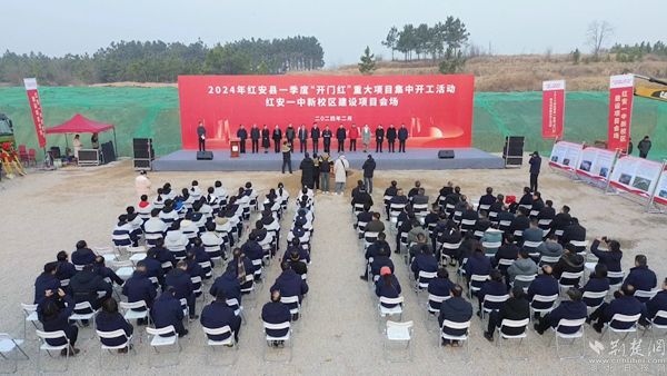 龍騰虎躍迎盛世,將軍故里喜事多。當天,紅安一中新校區(qū)建設項目、陜西國力信達康養(yǎng)項目、中農聯(lián)·紅安國際農商城、滬蓉高速紅安聯(lián)絡線城區(qū)出口連接線等12個項目現(xiàn)場熱鬧非凡,正在同時舉行紅安縣一季度“開門紅”重大項目集中開工儀式,吹響“開年即開工、起步即沖刺”的沖鋒號角,以賽龍奪錦之勢奮戰(zhàn)一季度“開門紅”。