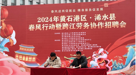 在活動(dòng)中,兩地人社部門相關(guān)負(fù)責(zé)人現(xiàn)場(chǎng)簽訂勞務(wù)合作協(xié)議,雙方將充分發(fā)揮各自優(yōu)勢(shì),共同就招聘信息發(fā)布、勞動(dòng)力輸送、培訓(xùn)資源共享、校企合作、勞務(wù)糾紛維權(quán)、穩(wěn)崗監(jiān)測(cè)等方面進(jìn)行合作雙贏,共同推動(dòng)實(shí)現(xiàn)浠水、黃石港區(qū)兩地的優(yōu)勢(shì)互補(bǔ)、資源共享、互惠共贏、協(xié)同發(fā)展。