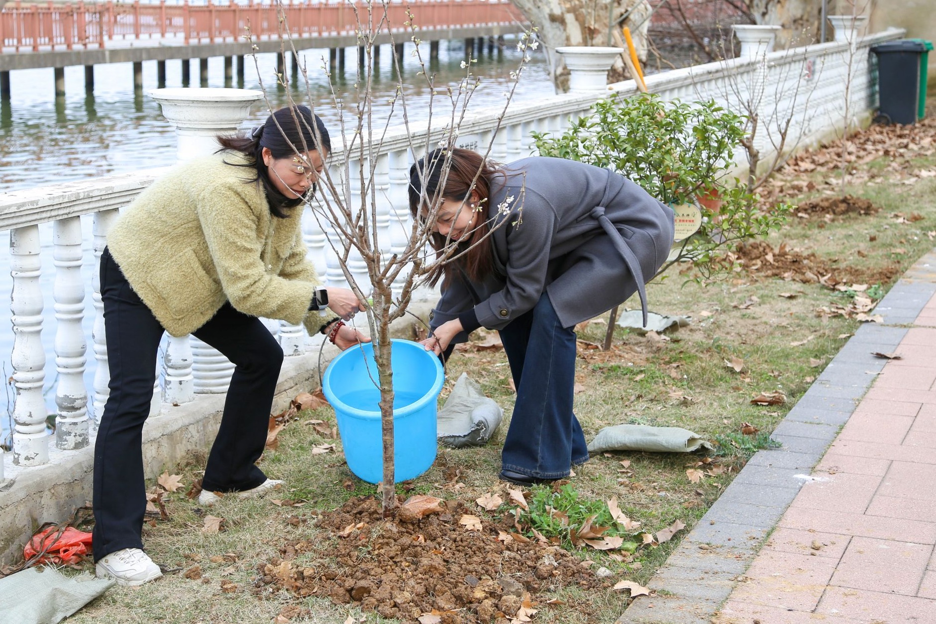 和煦的微風(fēng)里,剛栽下的櫻桃樹(shù)亭亭玉立,冬棗樹(shù)和李子樹(shù)的枝椏恣意舒展,如同環(huán)保意識(shí)在大家心中深深扎根,也寄寓著師徒之間的深厚情誼。