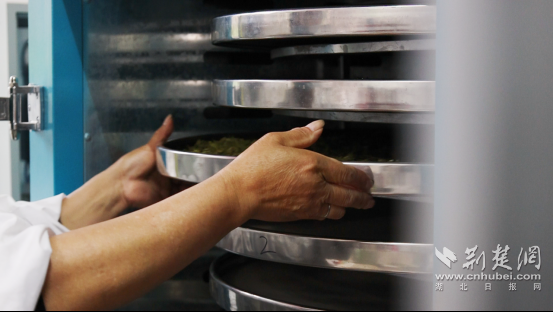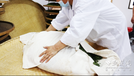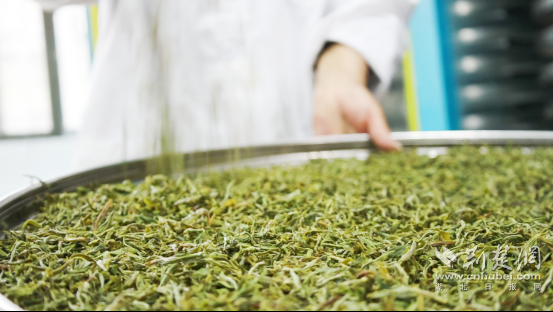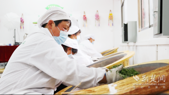 一進(jìn)入湖北紅綠黃茶業(yè)有限公司的生產(chǎn)車間,清冽的茶香撲鼻而來,工人們有條不紊地炒茶、悶茶。屋外,三兩茶農(nóng)正與公司負(fù)責(zé)人交接鮮葉,一派繁忙景象。