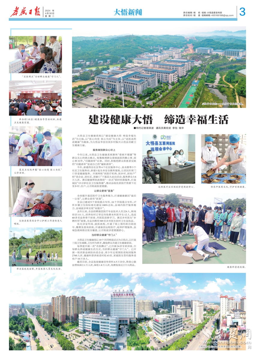 荊楚網(wǎng)(湖北日?qǐng)?bào)網(wǎng))訊 (通訊員 易榮波 黃宏武 李怡 錢華) 近年來,孝感市大悟縣衛(wèi)生健康系統(tǒng)以“建設(shè)健康大悟 締造幸福生活”為主線,以“醫(yī)心向黨 醫(yī)心為民”為主旨,以“送醫(yī)送藥送健康”為載體,為大悟縣爭(zhēng)創(chuàng)全國(guó)鄉(xiāng)村振興示范縣貢獻(xiàn)衛(wèi)生健康力量。