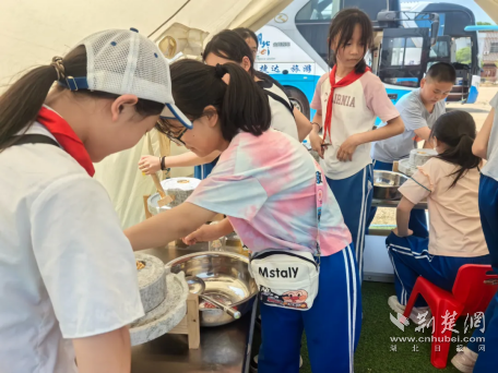 最后,學(xué)生們來到榜樣嚴(yán)畈村,在這里參觀了村史館和顏東山將軍紀(jì)念館。在竹竿河沙灘游樂園里,學(xué)生們在手工坊切身體驗(yàn)DIY手工、石磨豆?jié){、趣味竹藝、手工織布等活動,為這次研學(xué)之旅增添別樣樂趣。