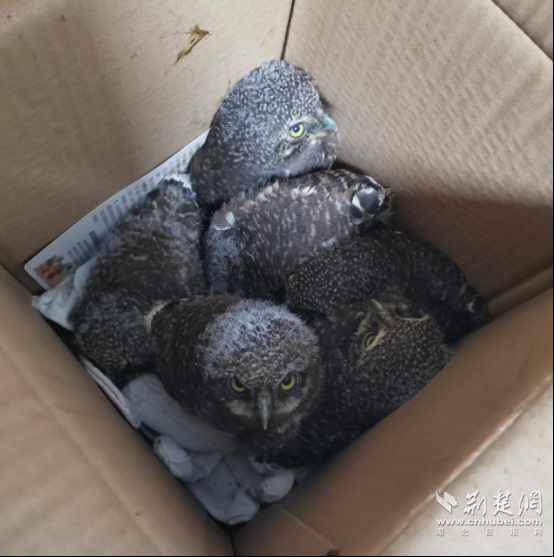 荊楚網(wǎng)(湖北日?qǐng)?bào)網(wǎng))訊 (通訊員 陳張川琦)4月24日,在孝南區(qū)楊店鎮(zhèn)的一片樹木周圍,4只可愛的貓頭鷹幼崽不慎從巢穴墜落至地面。幸運(yùn)的是,它們被熱心群眾及時(shí)發(fā)現(xiàn),并送往孝南區(qū)野生動(dòng)物和森林植物保護(hù)監(jiān)測(cè)站(以下簡稱“野保站”)得到了細(xì)心救助。緊接著,在4月30日,又有6只貓頭鷹幼崽在孝南區(qū)三汊鎮(zhèn)的高壓線附近被群眾發(fā)現(xiàn)并送至野保站。