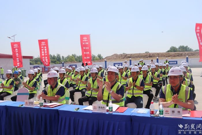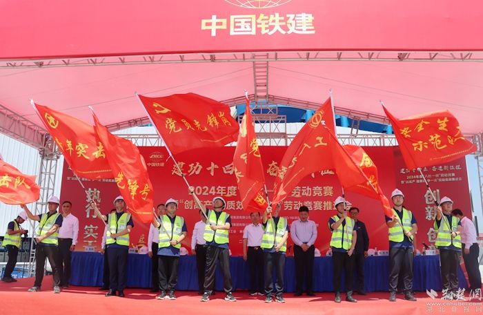 荊楚網(wǎng)(湖北日?qǐng)?bào)網(wǎng))訊(記者陶輝 通訊員劉聰 陳玨 秦楣)紅旗招展,誓言鏗鏘。5月10日,在位于麻城市鼓樓街道秦家崗的合武高鐵湖北段HWZQ-1標(biāo)4號(hào)拌和站,一場(chǎng)鼓舞人心的勞動(dòng)競(jìng)賽推進(jìn)會(huì)火熱舉行。