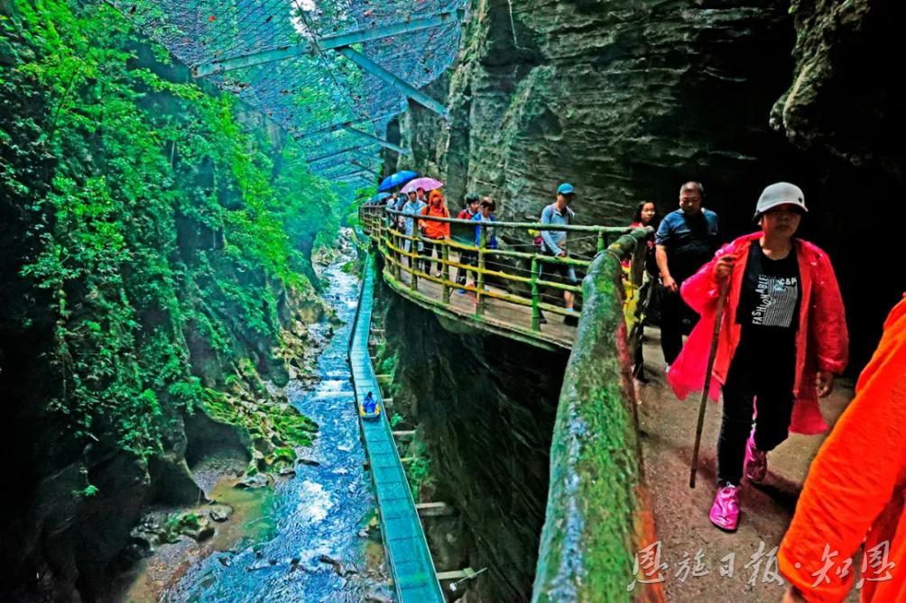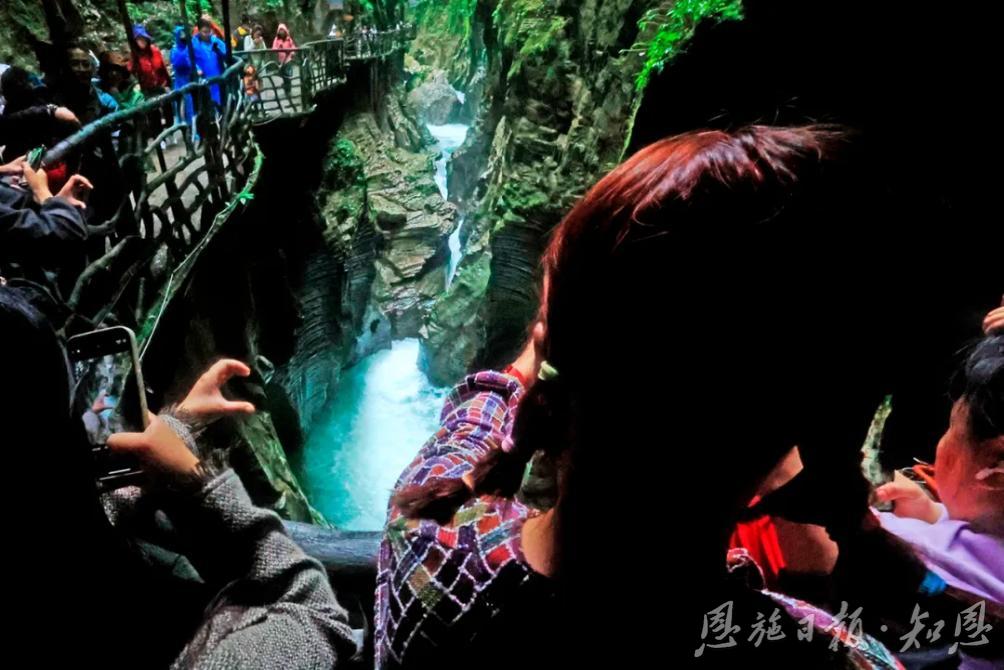 恩施地心谷景區(qū),險(xiǎn)奇中自帶幾分妖嬈。依舊是游人如織,依舊是歡聲笑語,當(dāng)游客沉醉于神奇大自然賦予的美景中, “5·19”中國旅游日在這里有了最好的注釋。