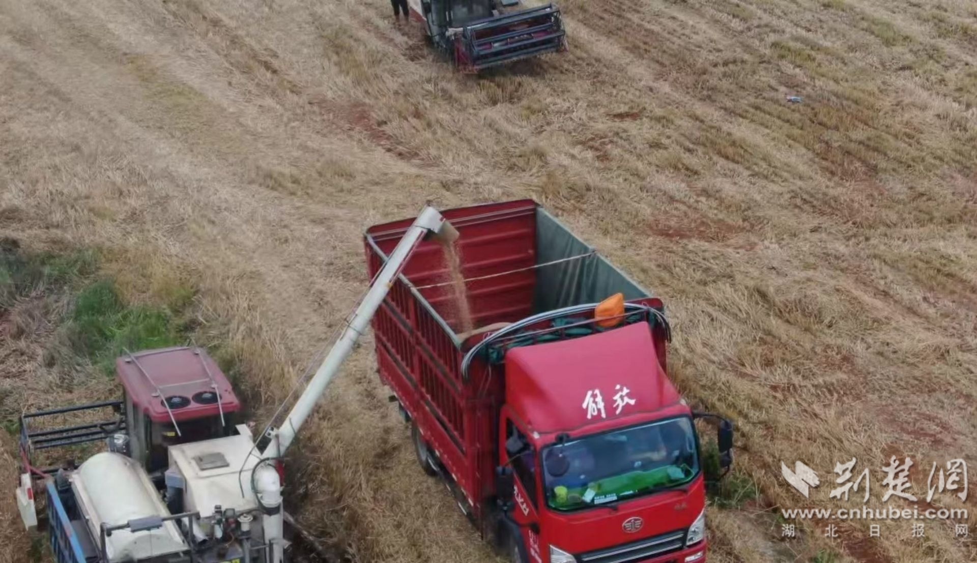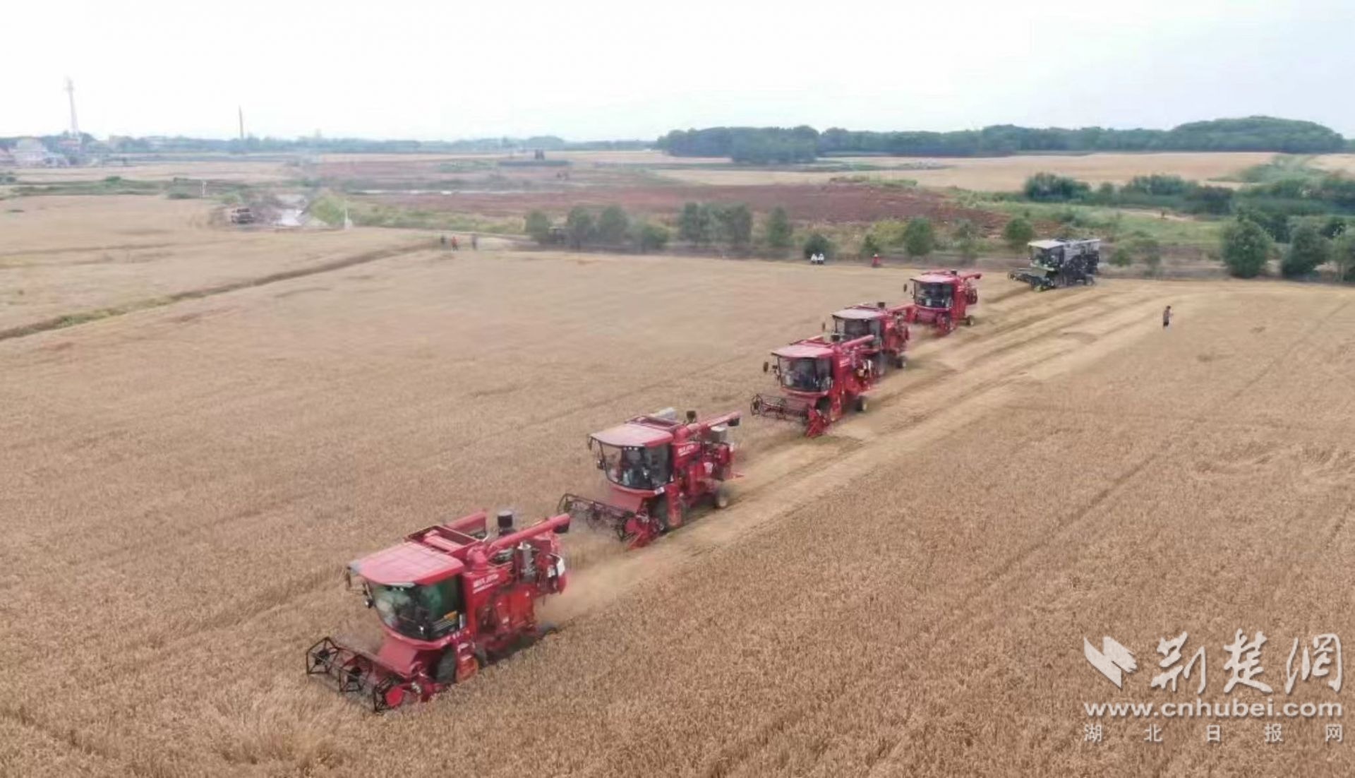 荊楚網(wǎng)(湖北日報網(wǎng))訊(通訊員王德強 陳培 徐思)風(fēng)吹麥田千層浪,又到一年收獲時。5月22日,在孝南區(qū)楊店鎮(zhèn)回春村小麥種植示范基地,十幾臺收割機在金黃的麥田里來回穿梭,將一株株成熟飽滿的麥穗卷入機倉,收割、脫粒,一氣呵成,快速又高效。30多分鐘,40余畝小麥便收割完成。