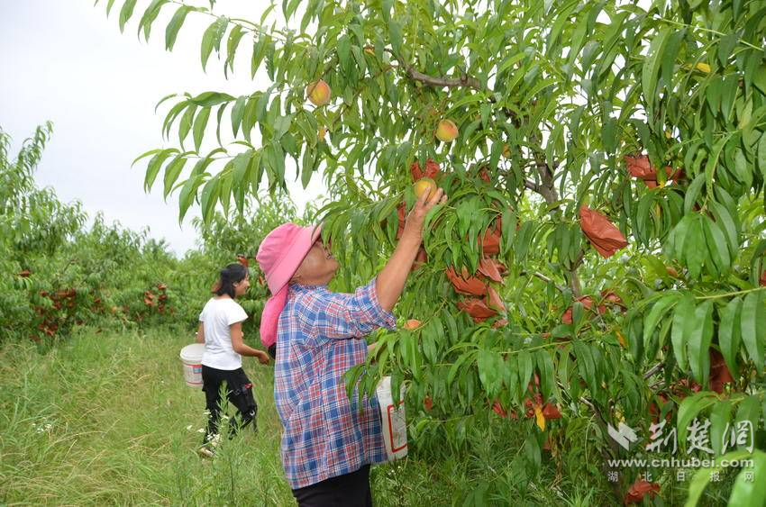 大新上沖黃桃采摘園負(fù)責(zé)人李康表示,黃桃幼果時,工人會給黃桃幼果套袋。套袋不但可以減少病蟲的危害,而且能有效減少裂果,增強(qiáng)果色,是提高果品質(zhì)量的關(guān)鍵環(huán)節(jié),一個個披上了“紙外衣”的黃桃更加香甜可口。黃桃采摘季從6月初開始,一直持續(xù)到六月下旬?!拔覀凕S桃果園的管理一直秉承著綠色、健康的經(jīng)營理念,通過人工割草、散養(yǎng)雞鴨鵝以及施用有機(jī)肥的方式來提高黃桃的品質(zhì),我們的黃桃可以即摘即食。”李康說。