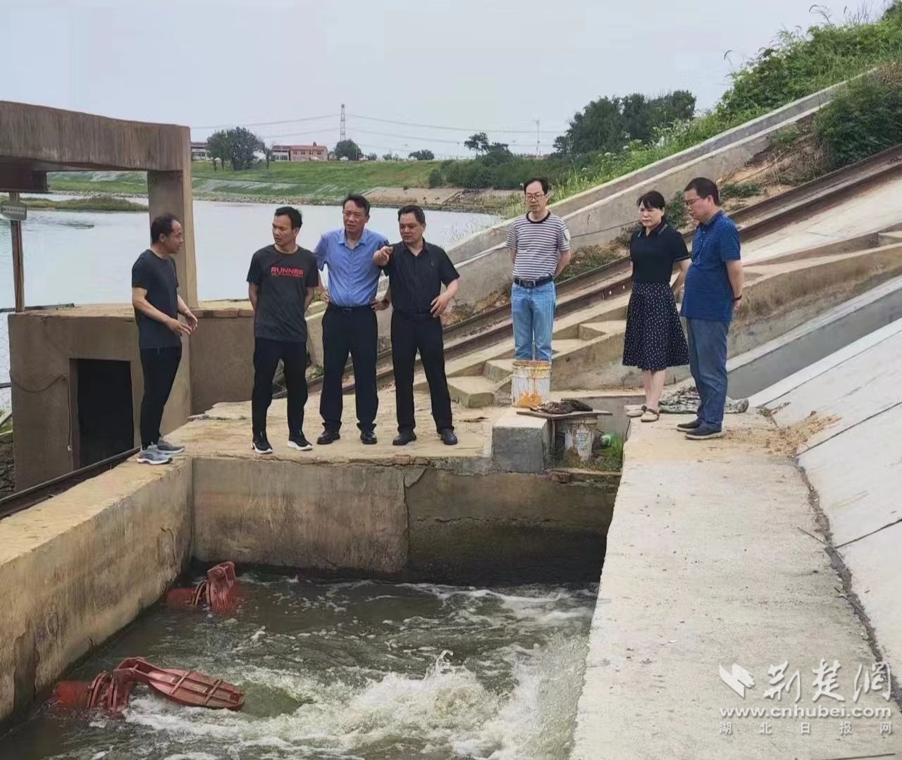 黃崗泵站站長喻建軍、排灌工程管理總站負(fù)責(zé)人何正國向葉意平匯報(bào)了泵站的工作。