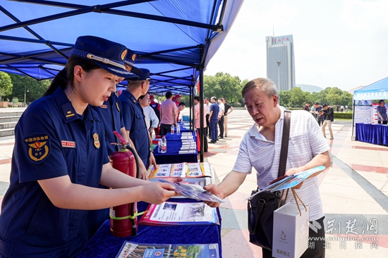同時,黃石市消防救援支隊支隊依托活動,精心準備以防火、滅火、逃生為主要內容的宣傳單、宣傳手冊、掛圖等宣傳資料以及咨詢臺,發(fā)放《居家防火指南》《燃氣安全提示》《各類場所逃生知識》、消防宣傳畫報等800余份宣傳資料,提醒廣大人民群眾要提高消防安全意識和自防自救能力,確保自身安全。