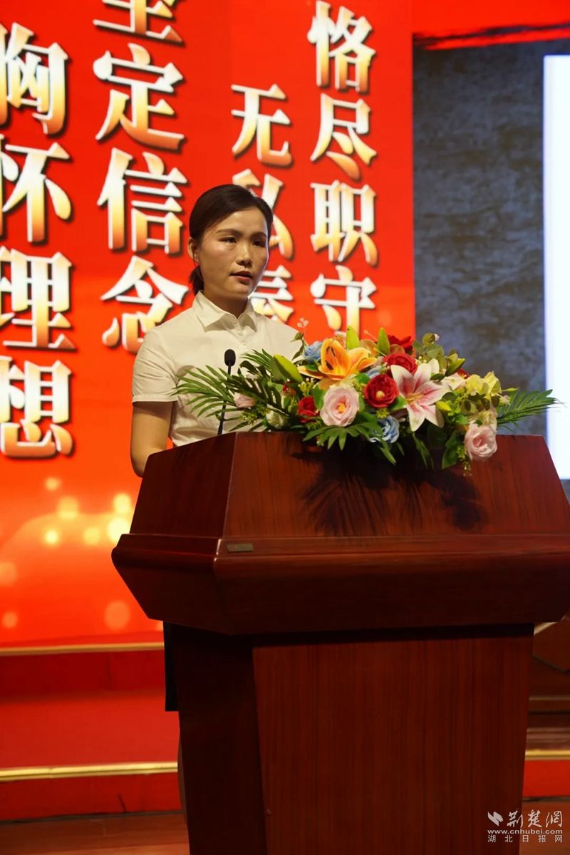 鄂城區(qū)西山街道寒溪社區(qū)黨委書(shū)記肖葉宣講。