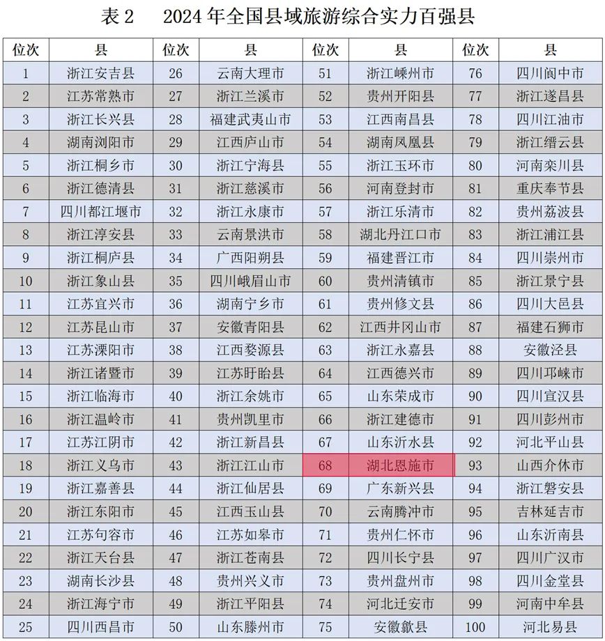 近日,由全國(guó)縣域旅游研究課題組、華夏佰強(qiáng)旅游咨詢中心近日在京聯(lián)合發(fā)布第六屆全國(guó)縣域旅游研究成果《全國(guó)縣域旅游發(fā)展研究報(bào)告2024》暨“2024年全國(guó)縣域旅游綜合實(shí)力百?gòu)?qiáng)縣”“2024年全國(guó)縣域旅游發(fā)展?jié)摿Π偌芽h”名單在京公布,恩施市上榜“2024年全國(guó)縣域旅游綜合實(shí)力百?gòu)?qiáng)縣”,自2019年來,恩施市連續(xù)5年上榜。