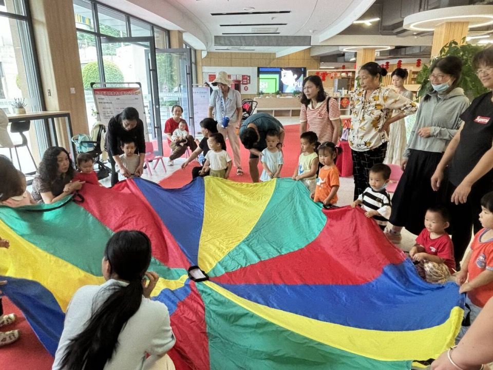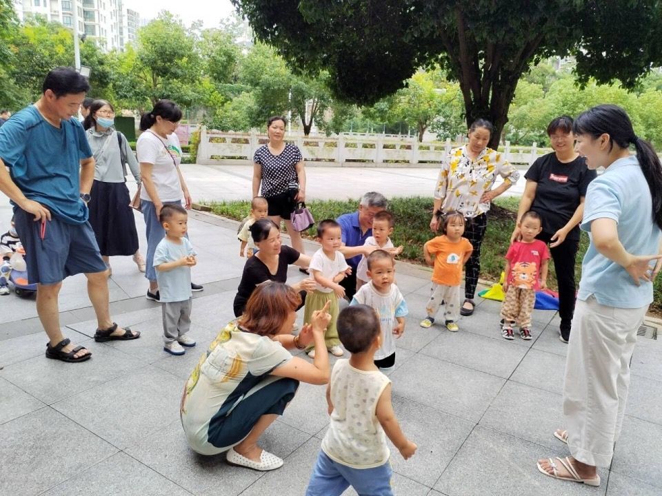 隨后的游戲環(huán)節(jié)形式多樣、內(nèi)容豐富,在指導(dǎo)老師生動形象的演示下,小朋友們專注投入到“模式過河”“一座小橋平地起”等游戲中,孩子們認(rèn)真觀察、用心體驗,沉浸在童趣與幻想空間中。在親子游戲“捕魚達(dá)人”環(huán)節(jié),指導(dǎo)老師動員家長參與其中,共同完成游戲任務(wù),與小朋友們一同成長互動,感受幸福與滿足。參與此次活動的社區(qū)居民連連稱贊,表示此次活動不僅幫助家長們建立了科學(xué)托育理念,也增進(jìn)了親子關(guān)系。