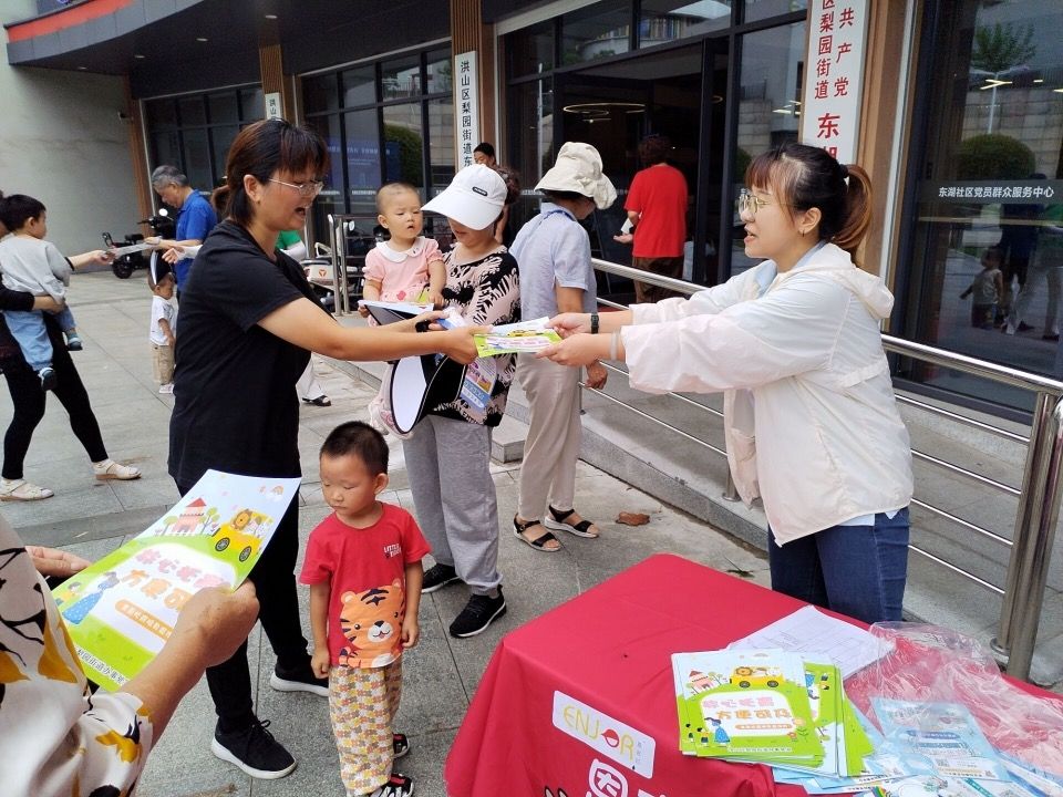在東湖社區(qū)黨員群眾服務(wù)中心,工作人員通過設(shè)置展板、發(fā)放宣傳單和宣傳品的方式,熱情向來往居民宣傳托育服務(wù)相關(guān)政策、嬰幼兒養(yǎng)育照護(hù)知識、健康生活理念等,進(jìn)一步加強(qiáng)居民的托育意識。