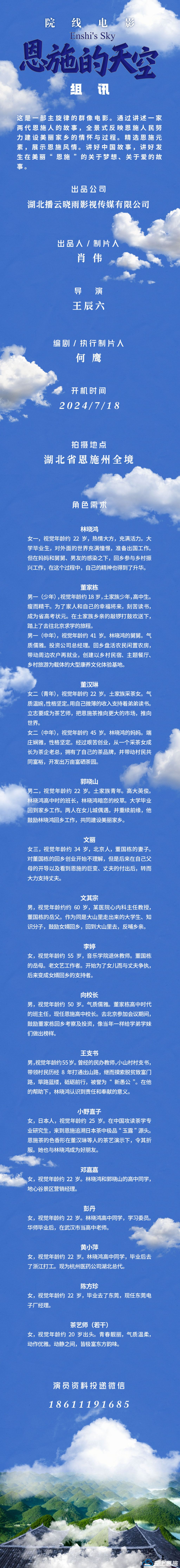 電影《恩施的天空》是一部主旋律的群像電影,通過(guò)精選恩施元素,展示恩施風(fēng)情,電影講述了一家兩代恩施人的故事,全景式反映恩施人民努力建設(shè)美麗家鄉(xiāng)的情懷與過(guò)程。