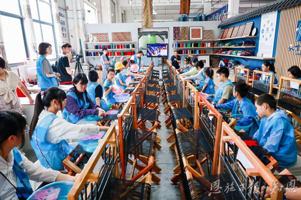 在西蘭卡普基地,研學(xué)團(tuán)孩子們首次體驗(yàn)了西蘭卡普的制作過程,通過親手操作傳統(tǒng)的織布機(jī),學(xué)習(xí)了豐富的手工藝術(shù)知識,并感受了土家族人民勤勞智慧的生活方式。