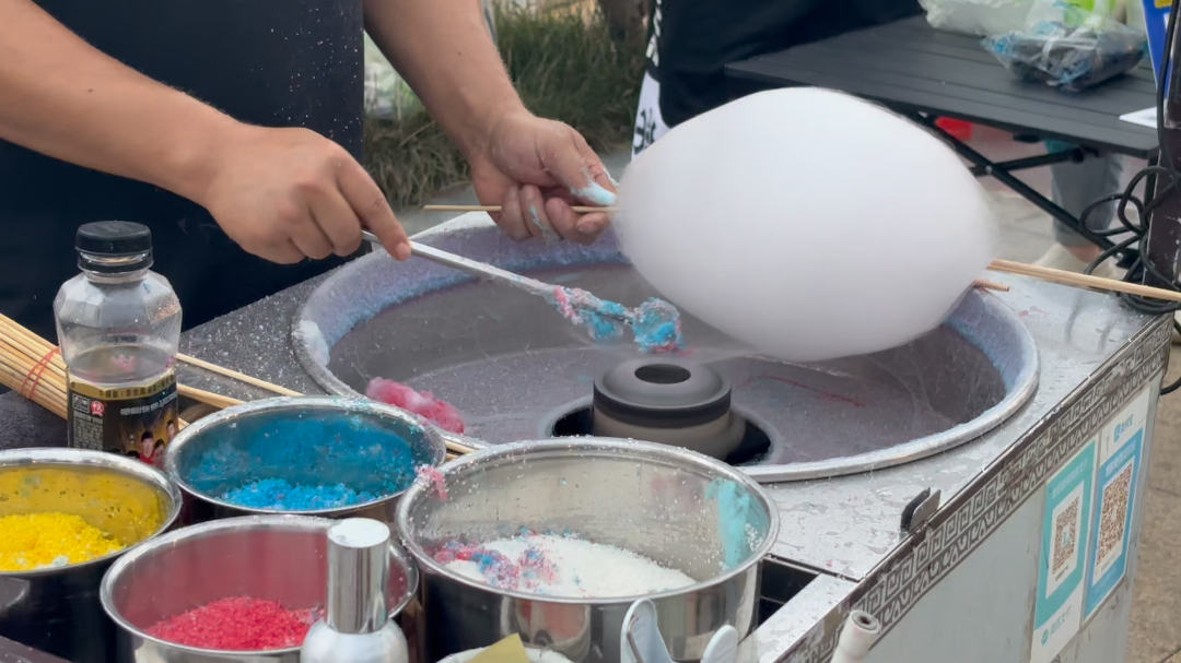 “聽(tīng)說(shuō)這里提供免費(fèi)攤位,人流量大、消費(fèi)氛圍濃厚,作為初次創(chuàng)業(yè)者,來(lái)這里擺攤可以為我們帶來(lái)可觀的銷(xiāo)售額和利潤(rùn)?!币故袛傊麝愒f(shuō)。