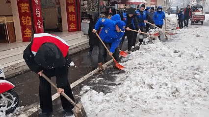 2024年2月,孝感遭受低溫凍雨災害,楊少斌帶領28名藍天隊員來到指定路段,拿起鐵鍬和工兵鏟,有條不紊地鏟雪除冰,很快便清掃出一條暢通的大道,為市民安全出行保駕護航。