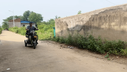 池漢橋騎著電動代步車出行。