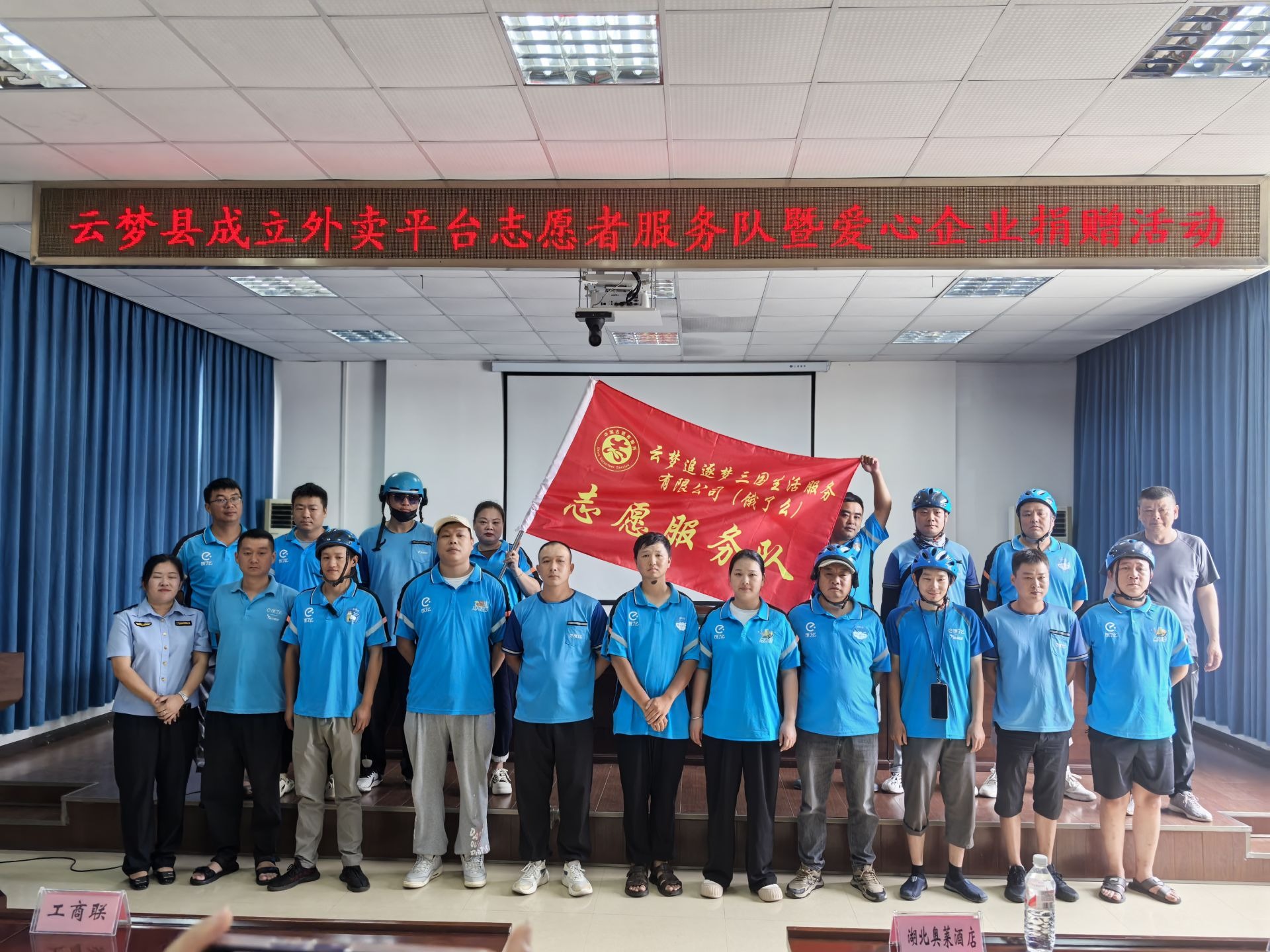 活動(dòng)現(xiàn)場(chǎng),由管理者和優(yōu)秀騎手組成“湖北齊夢(mèng)快餐配送有限公司(美團(tuán))志愿服務(wù)隊(duì)”和“云夢(mèng)追逐夢(mèng)三國(guó)生活服務(wù)有限公司(餓了么)志愿服務(wù)隊(duì)”正式成立并宣誓;縣市場(chǎng)監(jiān)管局和湖北奧萊酒店管理有限公司、云夢(mèng)縣臻品神舟西餐廳兩家愛心企業(yè)共同向志愿隊(duì)贈(zèng)送“愛心大禮包”。