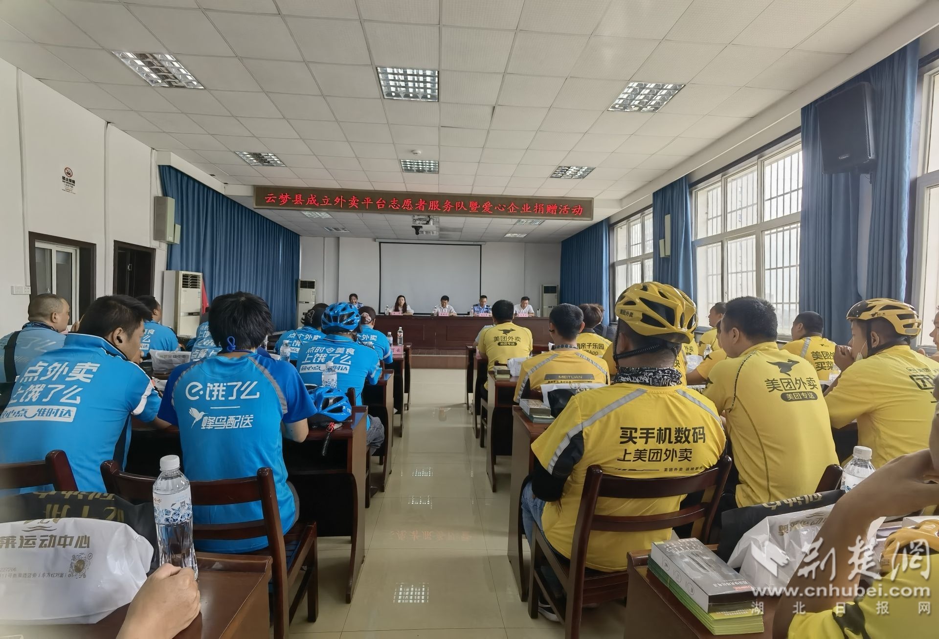 荊楚網(wǎng)(湖北日?qǐng)?bào)網(wǎng))訊(通訊員 胡慶玉 周四強(qiáng))7月16日,云夢(mèng)縣外賣平臺(tái)志愿服務(wù)隊(duì)成立暨愛心企業(yè)捐贈(zèng)活動(dòng)在縣市場(chǎng)監(jiān)管局舉行,縣委組織部副部長(zhǎng)李新進(jìn),縣委社工部副部長(zhǎng)冷軍利,縣工商聯(lián)主席王景,縣市場(chǎng)監(jiān)管局黨組書記、局長(zhǎng)程漢軍出席并向志愿隊(duì)授旗,縣內(nèi)2家愛心企業(yè)和美團(tuán)、餓了么外賣平臺(tái)40余名騎手參加活動(dòng)。